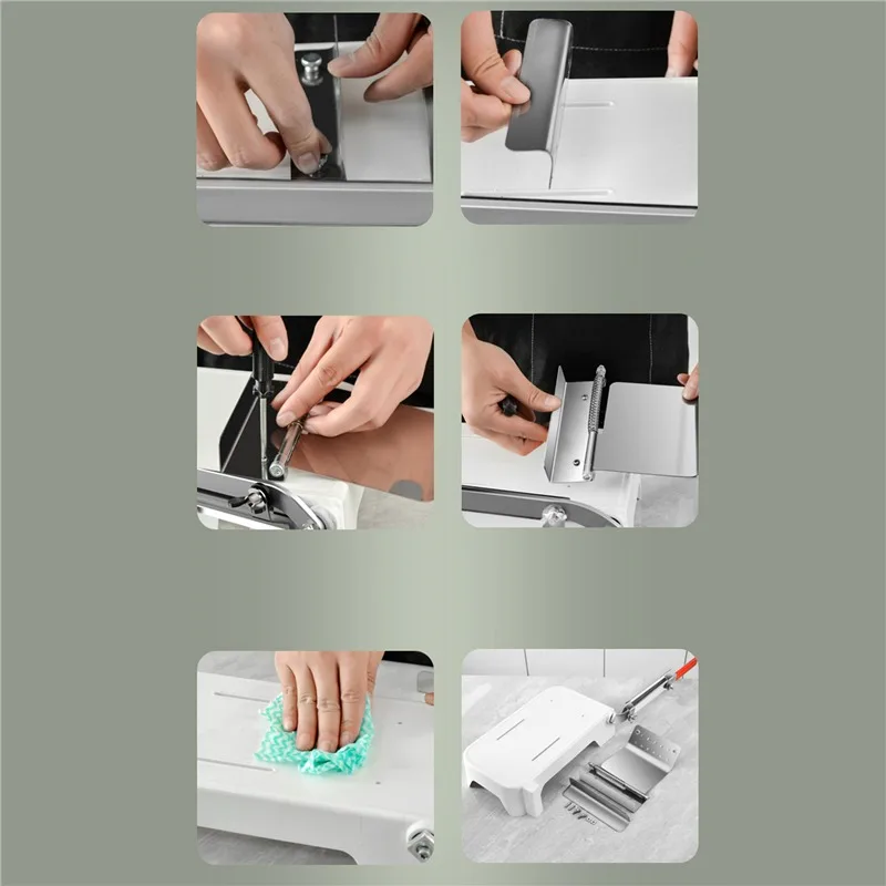 4. По сравнению с электрическим слайсером, наш ручной слайсер специально разработан для замороженного мяса и овощей! Он может эффективно избежать вибрации и шума электрического инструмента во время рабочего процесса, он прост в эксплуатации и прост в очистке. Каждая посылка поставляется с сменным лезвием.