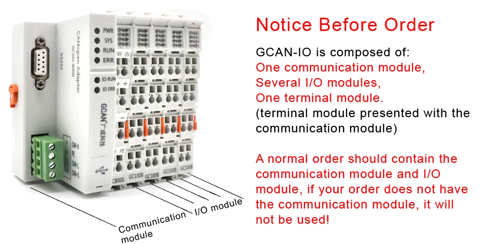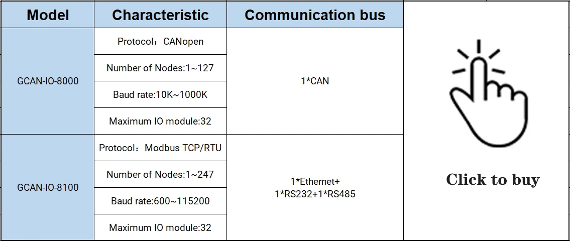 Примечание: GCAN-IO-8000/8100-это не основной модуль управления PLC, а модуль удаленного ввода-вывода. GCAN-IO-8000-это адаптер CANopen, а GCAN-IO-8100-адаптер Modbus RTU.