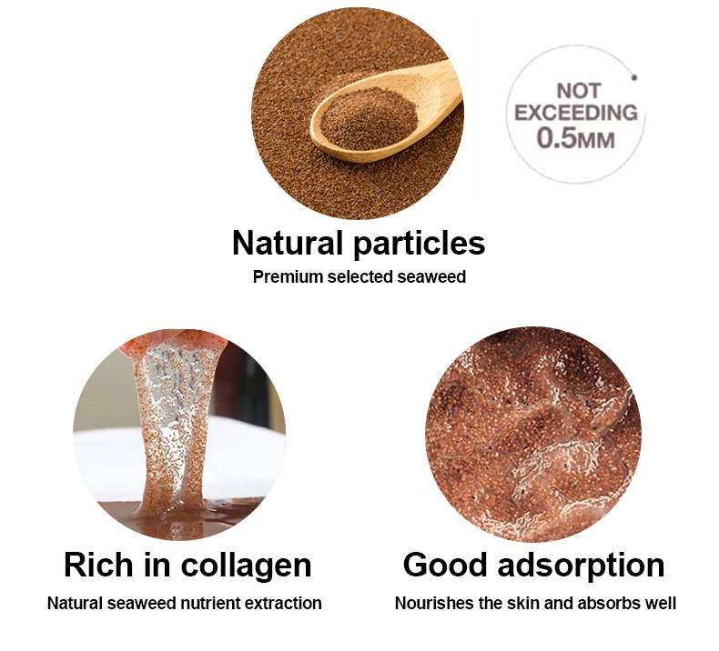 Мелкие частицы маска из морских водорослей является главным образом из светильник черная гигантская Экстракты водорослей, целлюлоза, гиалуронат натрия и других ингредиентов, которые могут помочь вам улучшить кожу увлажняющий фактор, сужает поры и делает кожу и фирма, улучшите степень увлажнения!
