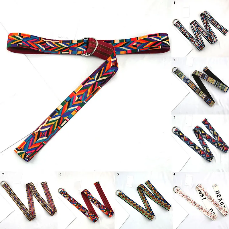 Женский тканевый ремень с принтом в этническом стиле, металлическое кольцо D с пряжкой на талии, джинсовый ремень, платье для брюк, женский пояс с украшением, пояс унисексОсобенности: