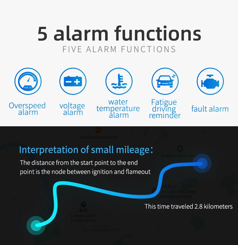 8. Сигнализация от усталости вождения: будильник от усталости вождения составляет 4 часа, пользователь может свободно устанавливать время или выключать будильник, диапазон времени установки: 1-8 часов