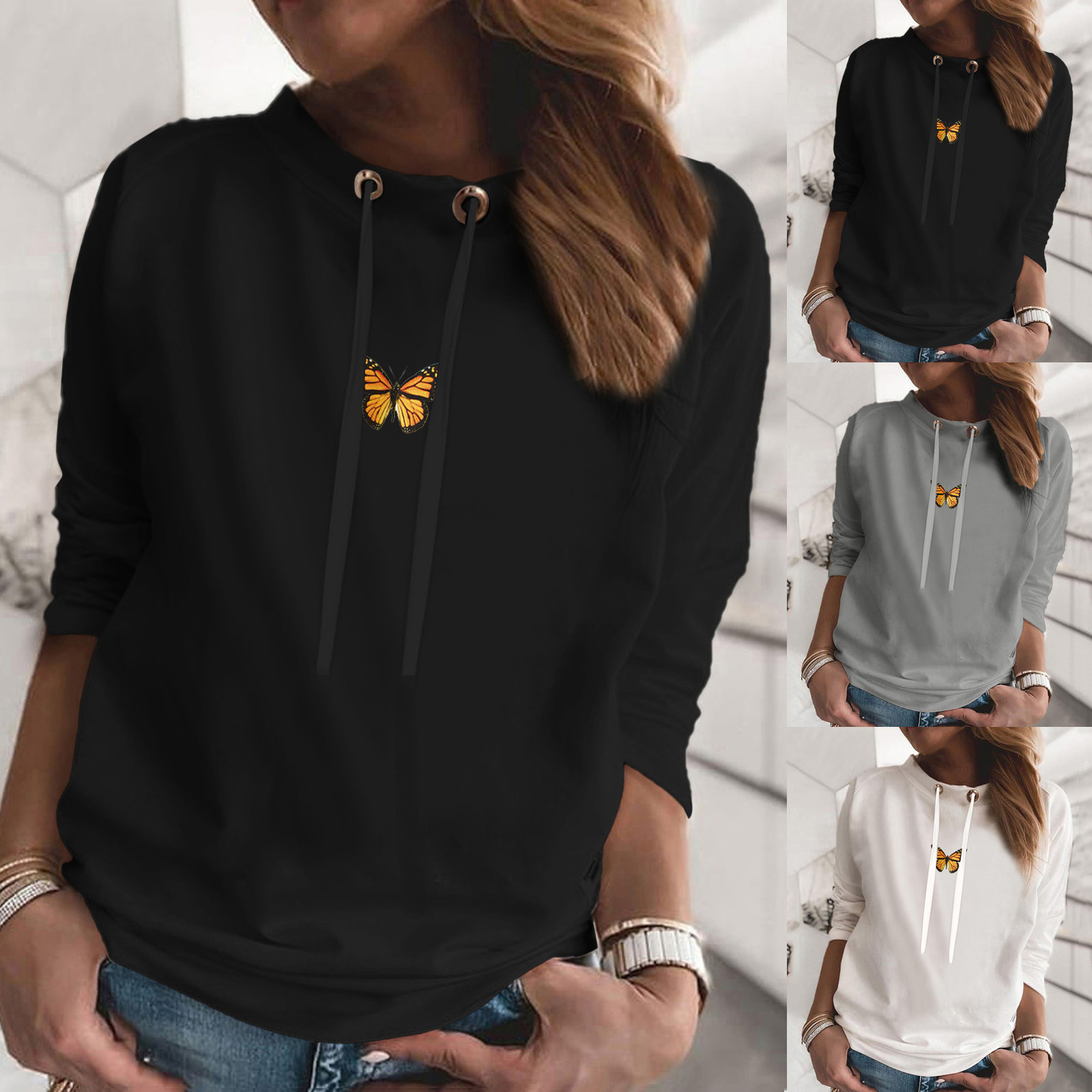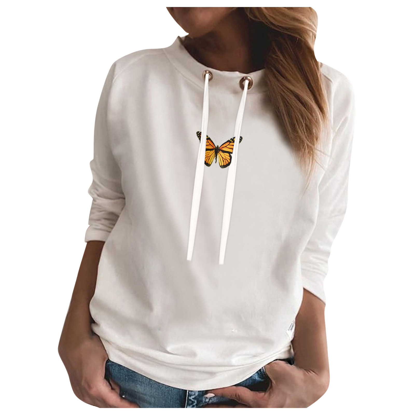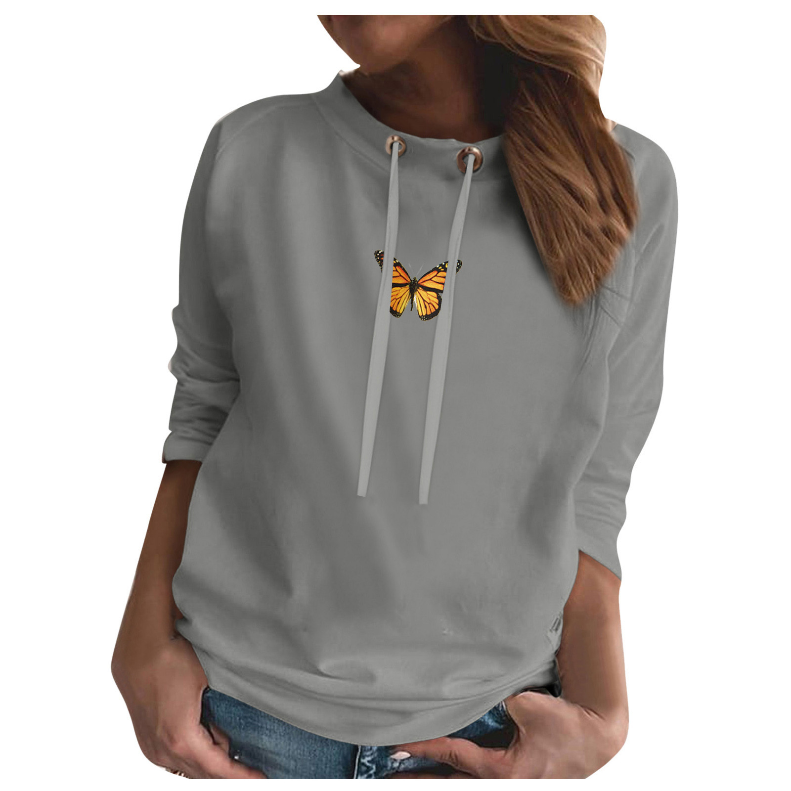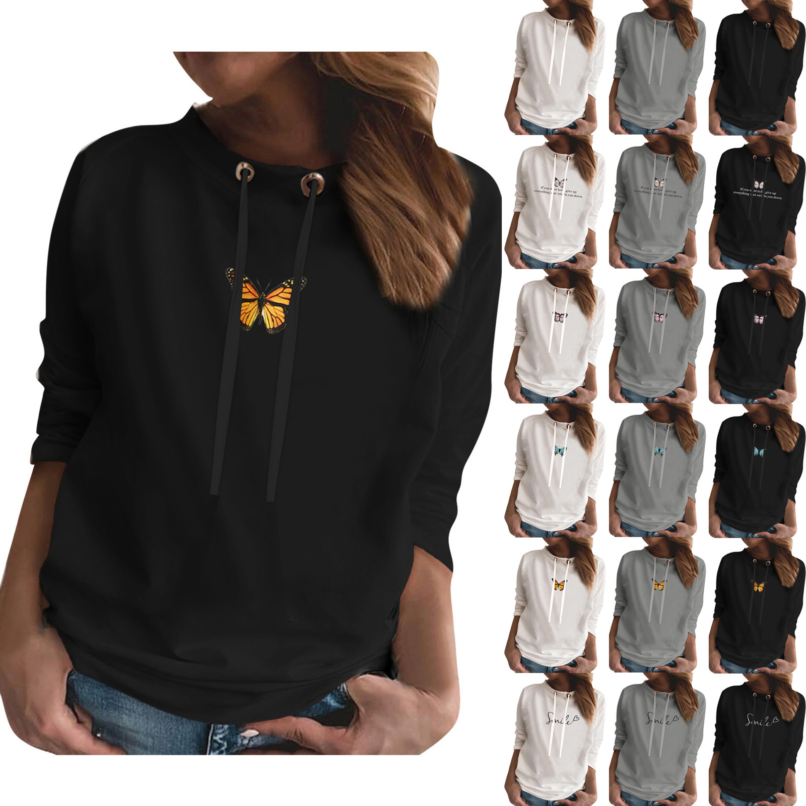 Свитер оверсайз в Корейском стиле; Модная Повседневная Толстовка с круглым вырезом и длинными рукавами и принтом бабочки; Bluza damска