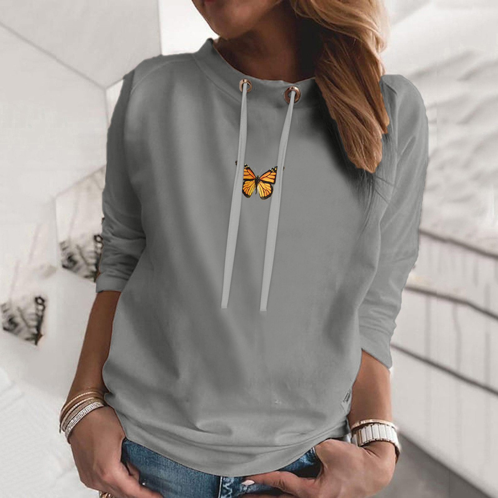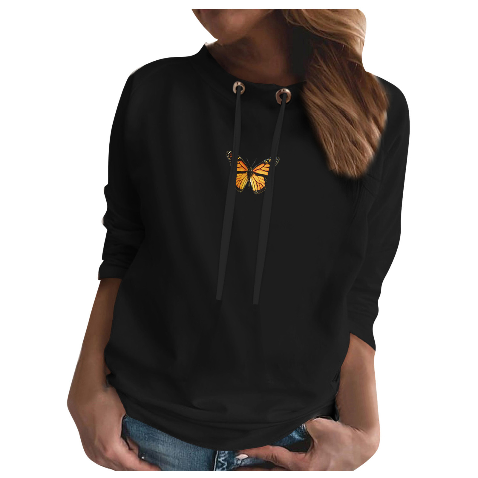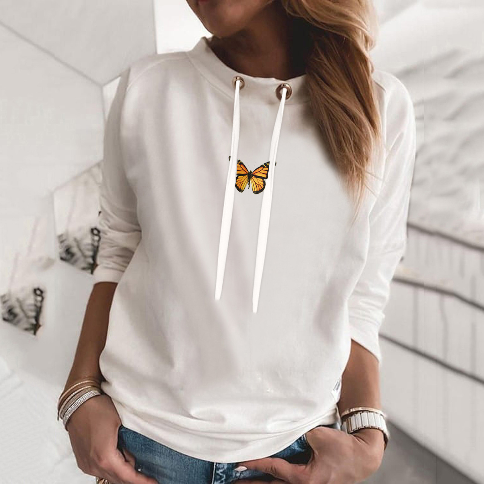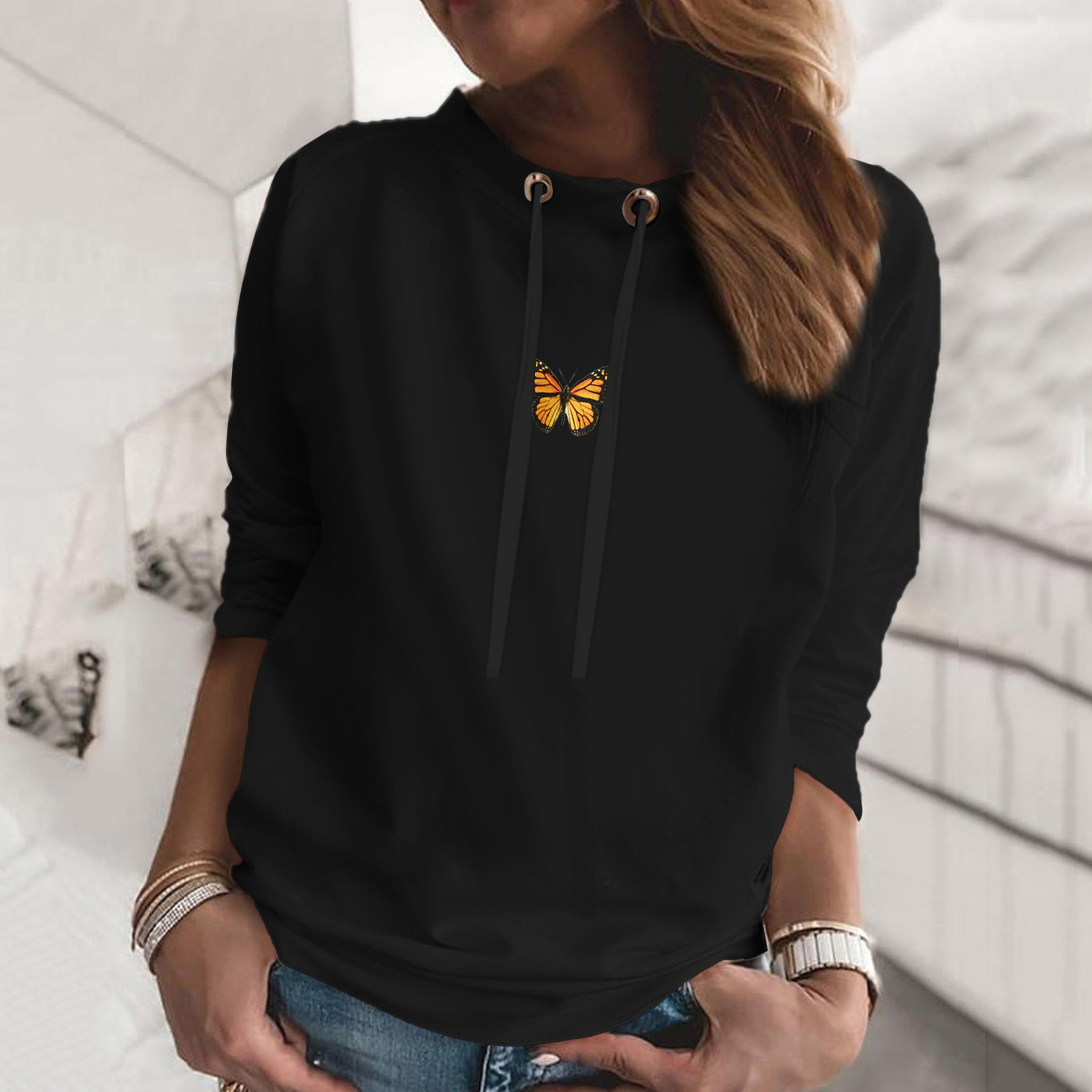 Свитер оверсайз в Корейском стиле; Модная Повседневная Толстовка с круглым вырезом и длинными рукавами и принтом бабочки; Bluza damска