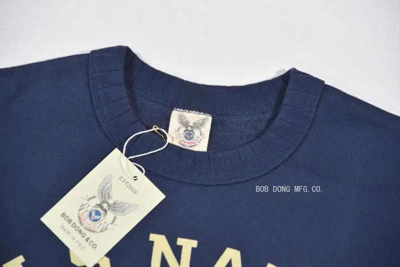 Мужской пуловер с принтом BOB DONG, темно-синий пуловер с круглым вырезом в стиле милитари