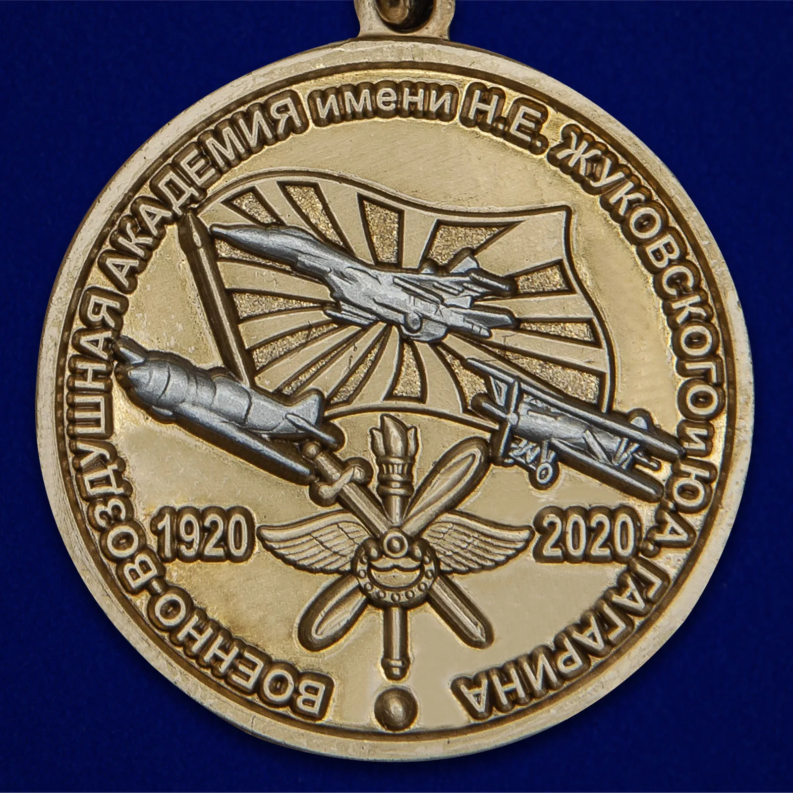Внимание! Изделие не является государственной наградой! Гайка фиксации орденов и знаков может отличаться по размеру и форме от представленного на фото образца, продолжая выполнять основную функцию. Медаль "100 лет Военно-воздушной академии им. Н.Е. Жуковского и Ю.А. Гагарина" ВВС, ВКС 99828 (727443210)