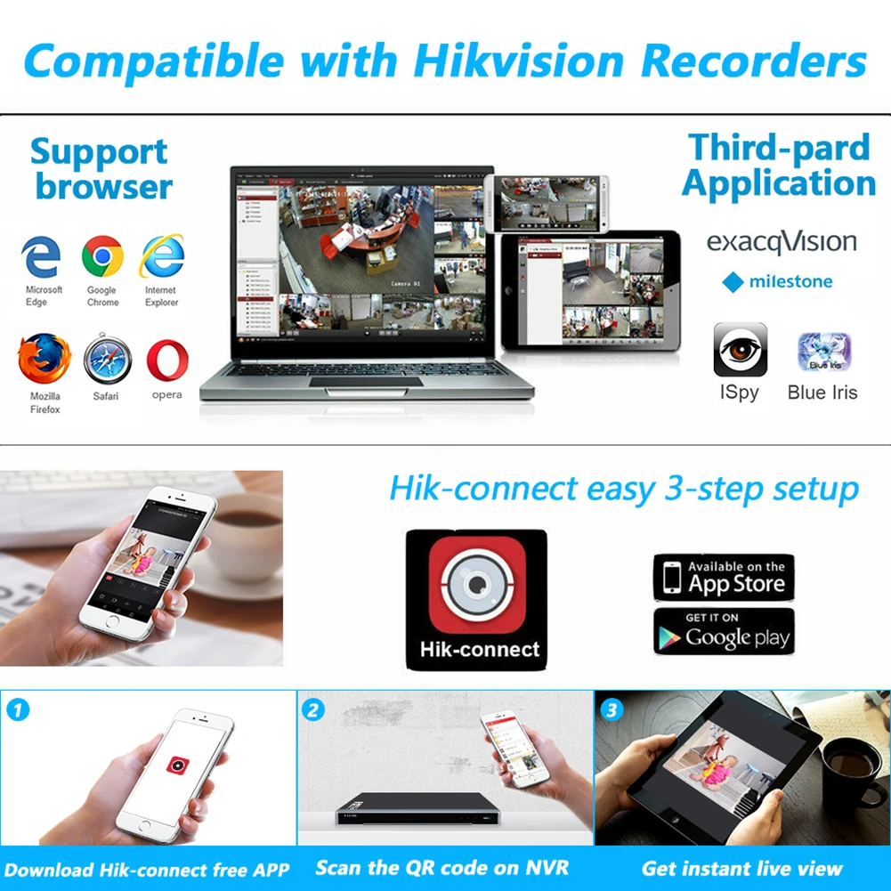 (Можно подключить к различным брендам сетевых камер, а брендовые камеры Hikvision можно подключать и играть)
