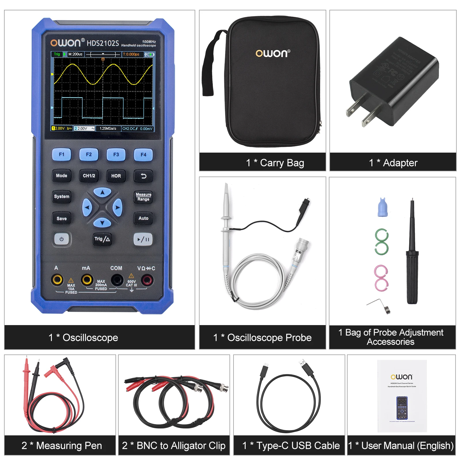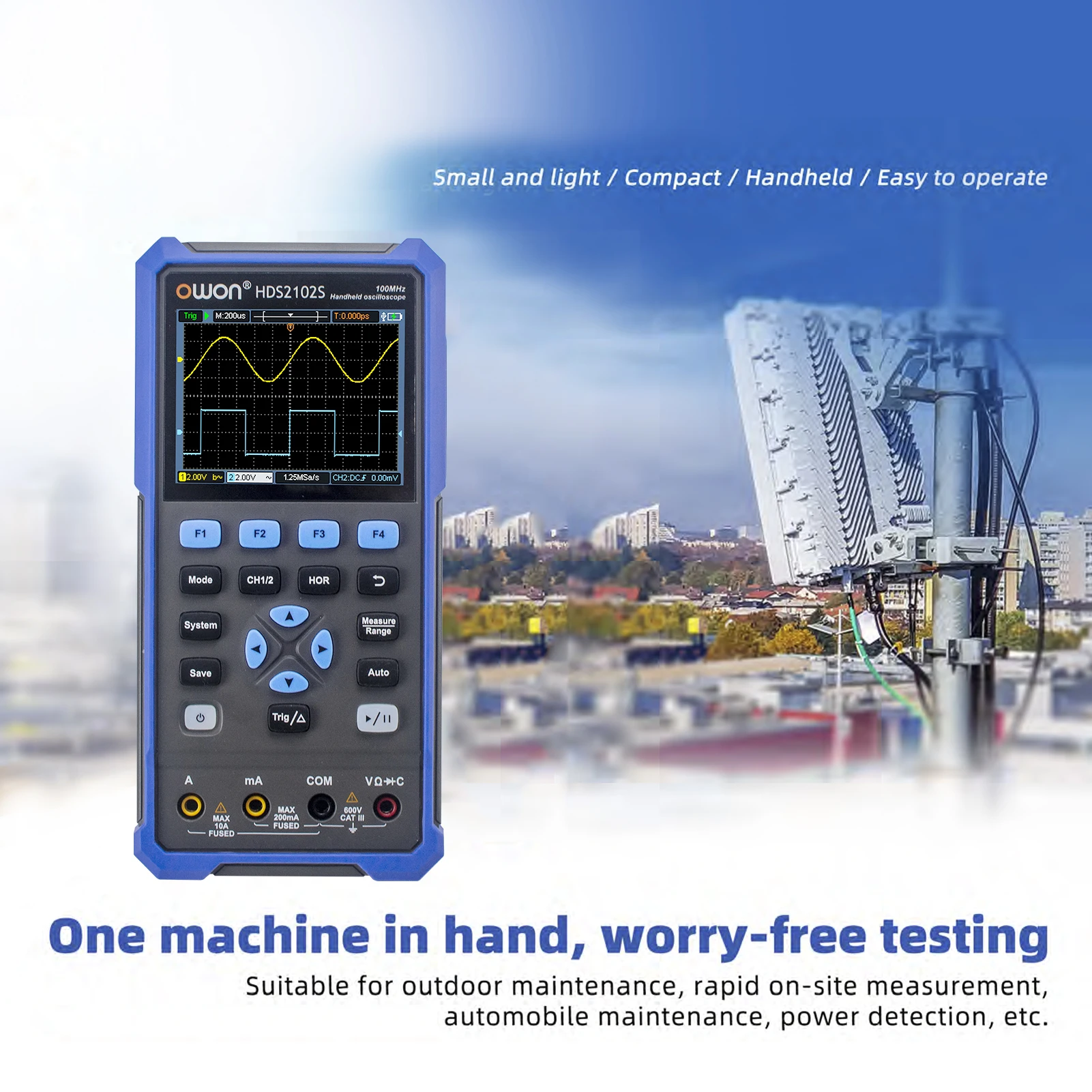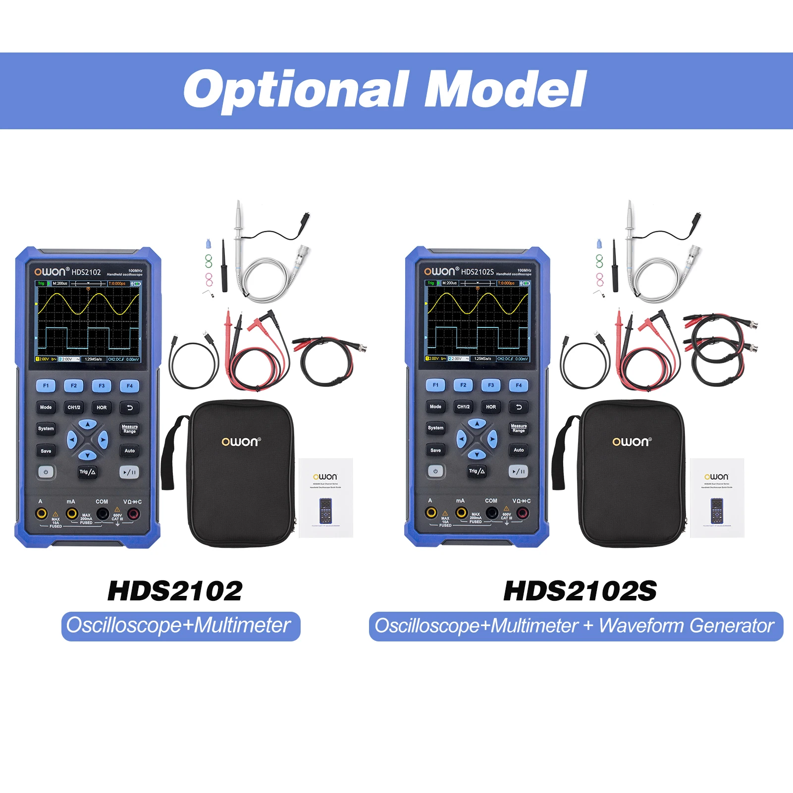 [2 модели опционально, многофункциональный инструмент]HDS2102 (осциллограф + мультиметр); HDS2102S (осциллограф + мультиметр + генератор сигналов). Одна машина в руке, беспроблемное тестирование в нескольких сценах.
