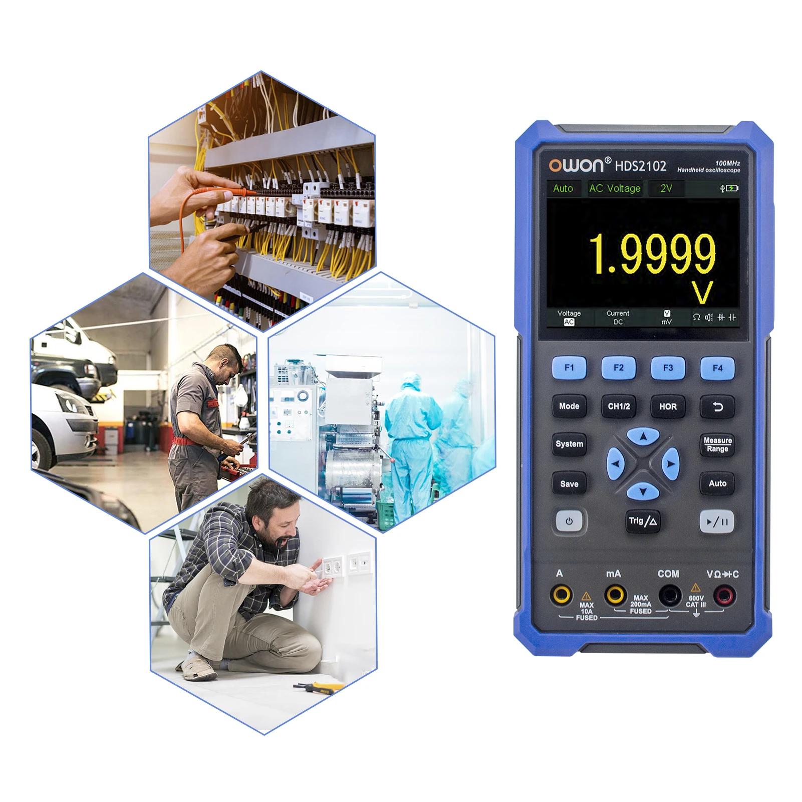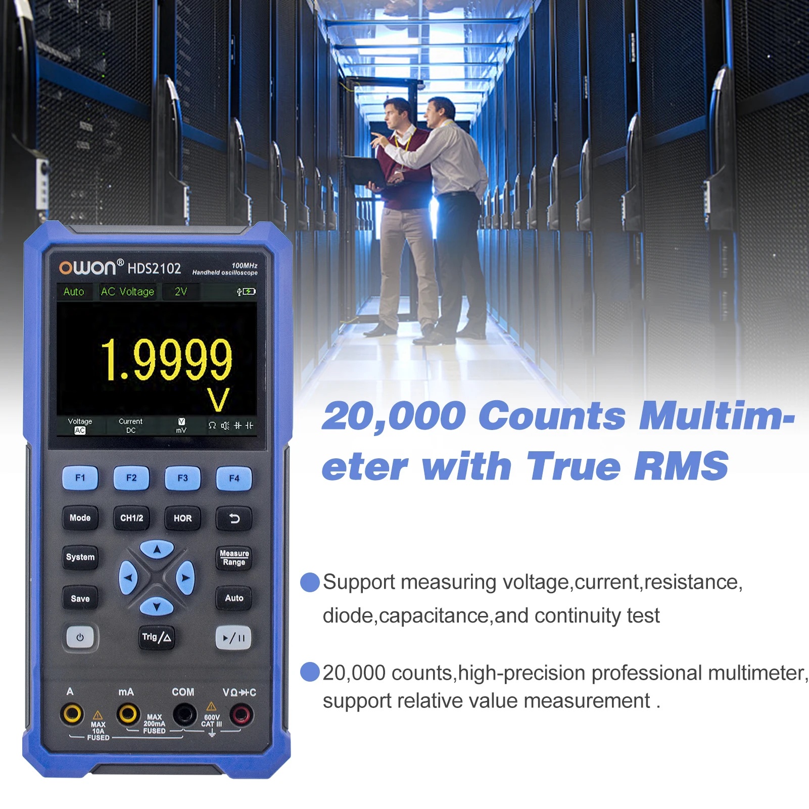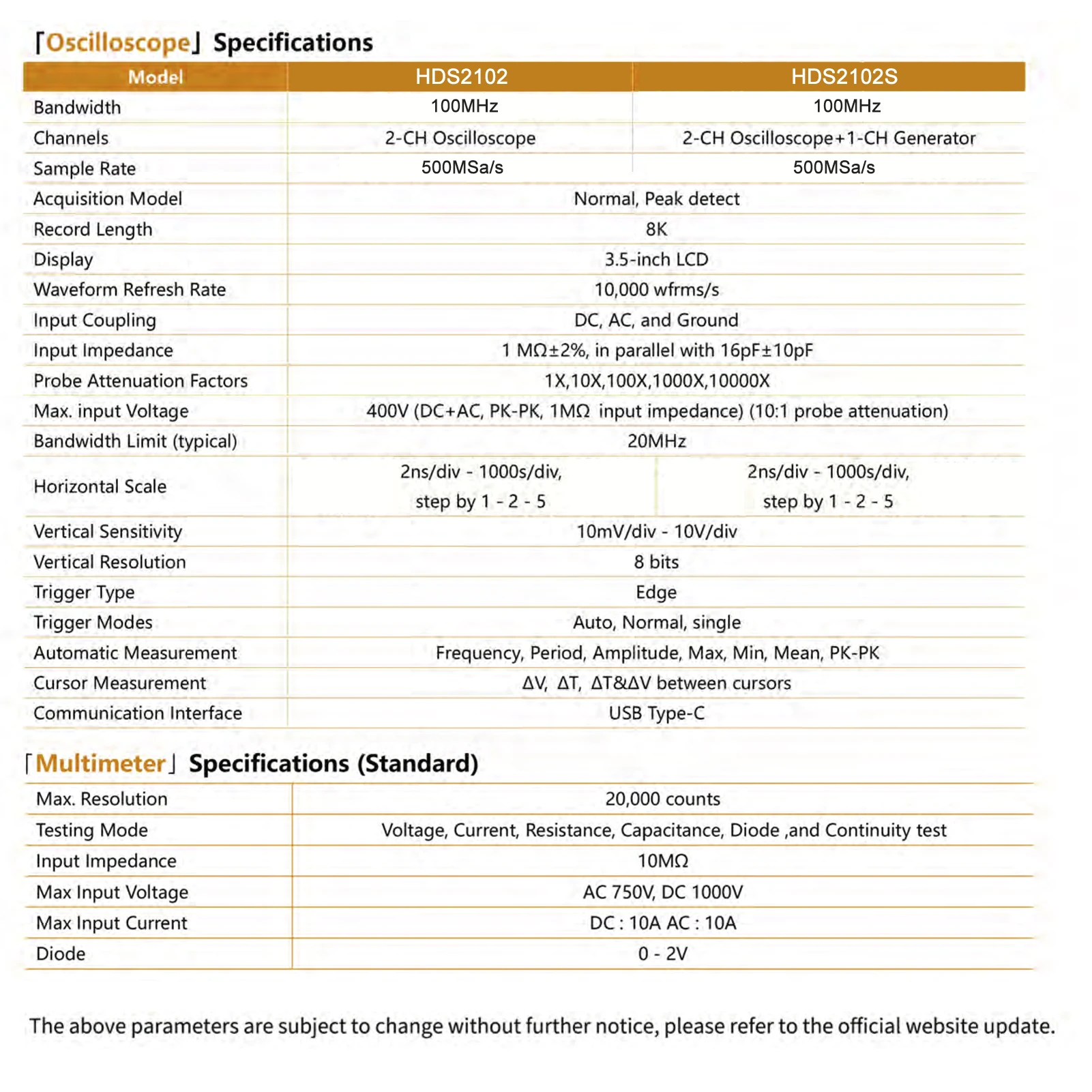 [2 модели опционально, многофункциональный инструмент]HDS2102 (осциллограф + мультиметр); HDS2102S (осциллограф + мультиметр + генератор сигналов). Одна машина в руке, беспроблемное тестирование в нескольких сценах.