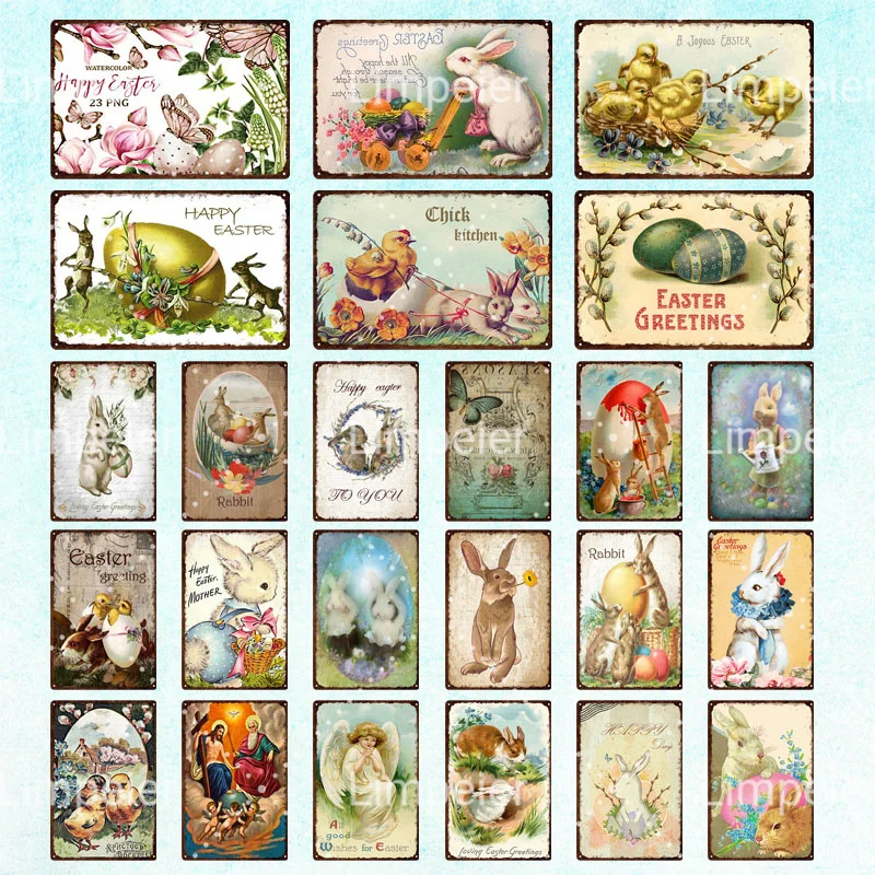 Винтажный металлический домашний оловянный знак, семейный Пасхальный кролик, Постер, яйцо, охота, вечерние, подарок на стену...