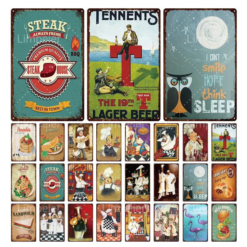 Винтажная жестяная картина пивной торт Бар Гараж человек пещера ферма девушка розовый десерт Комната D...