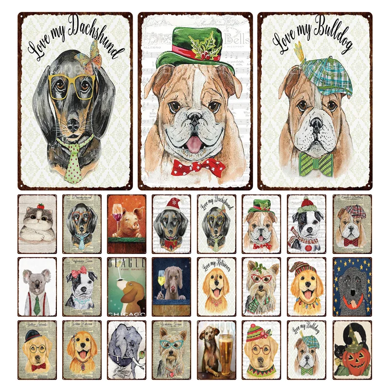 Ретро домашнее животное собака жестяная картина цветок птица рынок знак коридор шоссе отель м...