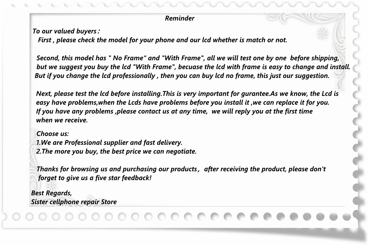 Магазина Brothers Cellphone Repair Store работает с 23.09.2021. его рейтинг составлет 89.47 баллов из 100. В избранное добавили 533 покупателя. Средний рейтинг торваров продавца 4.6 в продаже представленно 355 наименований товаров, успешно доставлено 645 заказов. 418 покупателей оставили отзывы о продавце.
