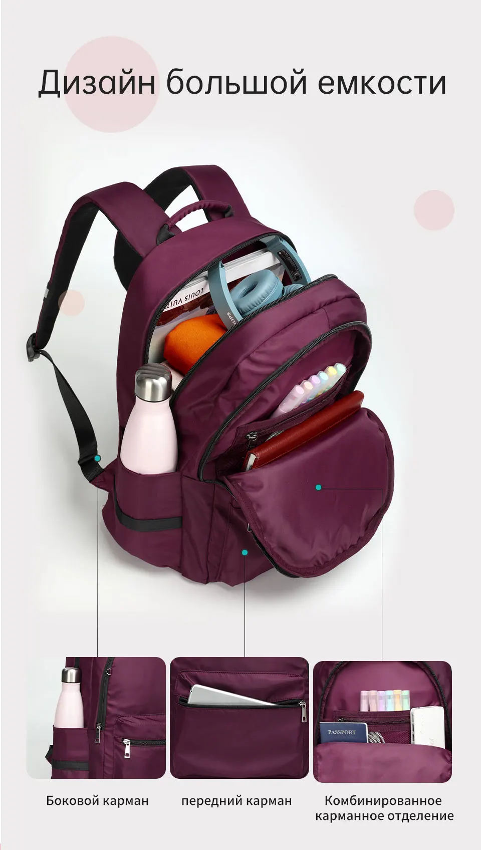 2. Светоотражающая полоса на плечевом ремне, обеспечивает гарантию безопасности для вас на открытом воздухе в ночное время