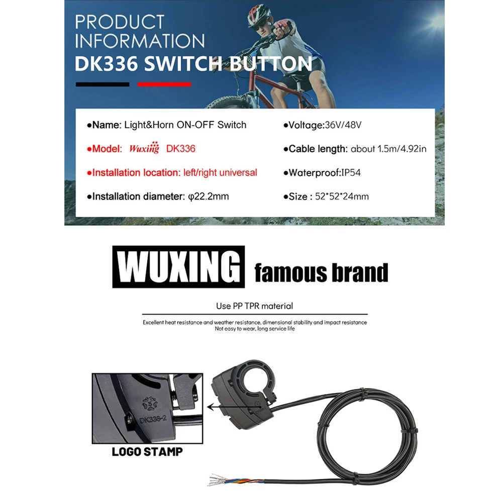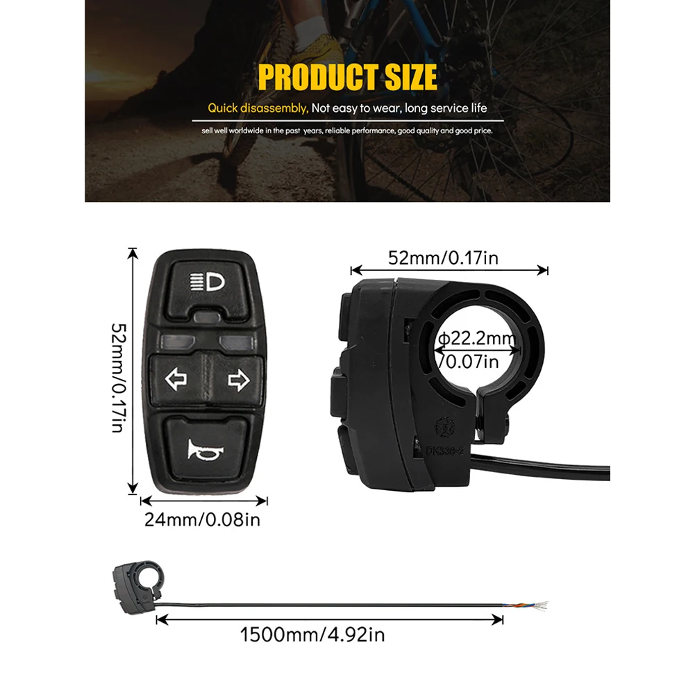 * 100% новый и высокое качество * Используется для электрического скутера, электрического велосипеда, трицикла MTB * Он имеет передний светильник, переключатель * Подключите устройство к нему, а затем подключите устройство к аккумулятору * Вы можете использовать это для управления устройством вкл. Спецификация: * Модель: DK 226 * Длина кабеля: 1,5 м/4.92in * Размер руля: 22 мм * Размер продукта: L52 x W24 x h52мм * Водонепроницаемость: IP54 * Напряжение: 36 В/48 в