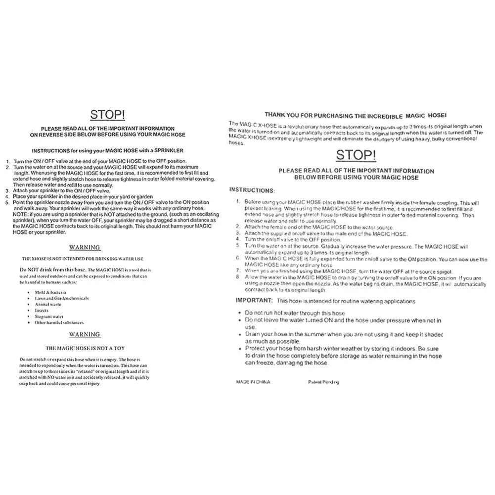 ![]() Расширяемые гибкие водные пластиковые шланги высокого качества, тканевая труба, многофункциональная поливная распылительная пушка для автомобильного сада с 6 типами Особенности: 1. Процесс наполнения может быть расширен до соответствующего 25 50 75 100 125 150 175 200 футов. 2. Как только вода проходит через водопроводную трубу, труба будет расширяться в длину и вода не пройдет. Он откажет свою первоначальную длину, и он будет удобен для использования в более отдаленных местах. Он легкий и не занимает места. 3. Шланг изготовлен из высококачественной ткани, красивый и износостойкий. Применимые случаи: подходит для полива и очистки: сад, автомойка, RV, бассейн, лодка и так далее. Характеристики: Водопровод + 3 точки 1 разъем + функциональный водяной пистолет Размер: 25FT,50FT,75FT,100FT,125FT,150FT, 175ft, 200FT Растягивающаяся Длина (около): 25FT-5,8-6,5 м/19,02-21.32ft 50FT-10,8-11,8 m/35,43-38.71ft 75 футов-15,8-16,8 м/51,83-55,11 футов 100 футов-20,8-22,8 м/68,24-74,8 футов 125FT-27,8-29,8 m/91,2-97.76ft 150 футов-32,8-36,8 м/107,61-120 футов 175FT-41,8-42,8 m/137,13-140.41ft 200FT-47,8-48,8 m/156,82-160.1ft
