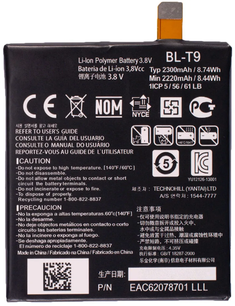 Перед установкой аккумулятора обязательно проверьте контакты на наличие защитной плёнки. Если она присутствует, обязательно удалите. Рекомендуем произвести не менее 5-6 циклов полной зарядки-разрядки аккумулятора для корректного отображения процента заряда устройством. Список совместимых устройств: LG NEXUS 5 D821, LG Nexus 5 D820, LG X view K500DS, EAC62078701, BL-T9, EAC62078701+, EAC62078721, CS-LKD821SL