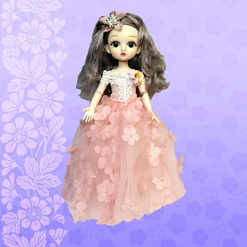 Красивая и грациозная кукла Венди с красивыми длинными волосами в блестящем розовом бальном платье с цветочками с большими реалистичными глазами.
