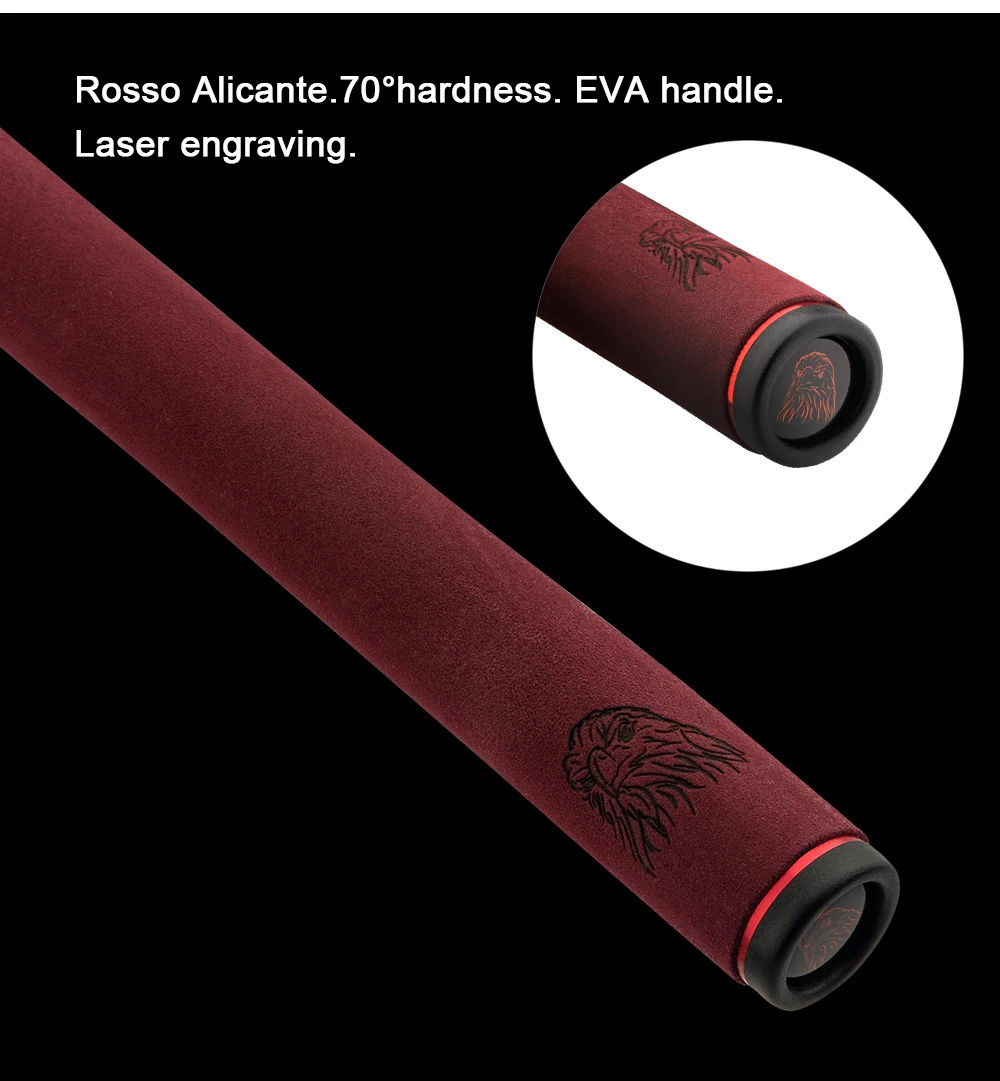 1: углеродное волокно Toray T1100. 45 ° поперечное углеродное волокно технология Power X. Удочка может поддерживать тяговую мощность до 6 кг.