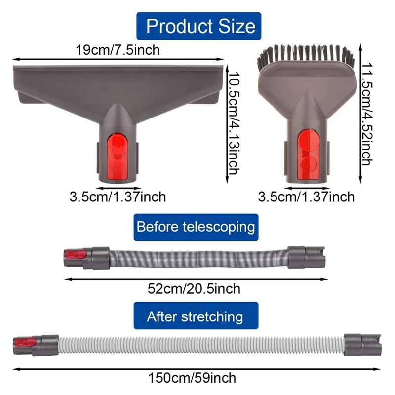 Простота установки: можно быстро подключить непосредственно к вакууму Dyson V15 V8 V7 V10 V11, нет необходимости в дополнительном адаптере. Каждая кисть оснащена кнопкой быстрого крепления.