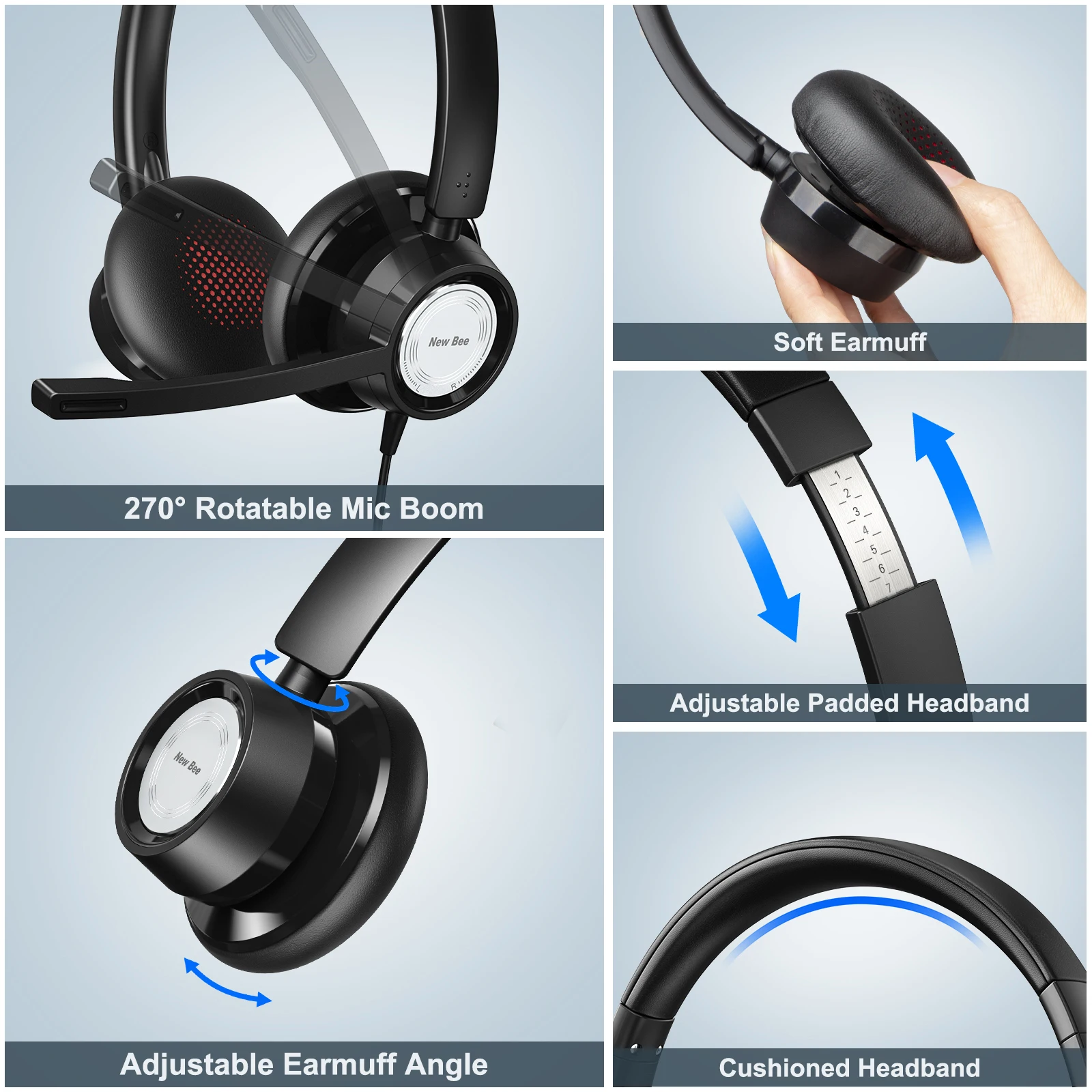4. Ультракомфортная головка: новая usb-гарнитура Bee H362 использует высокоэластичные и дышащие амбушюры, кожа мягкая и не легко ломается, эффективно увеличивает срок службы. Ношение в течение длительного времени не вызовет боли, и это принесет вам комфорт на весь день.