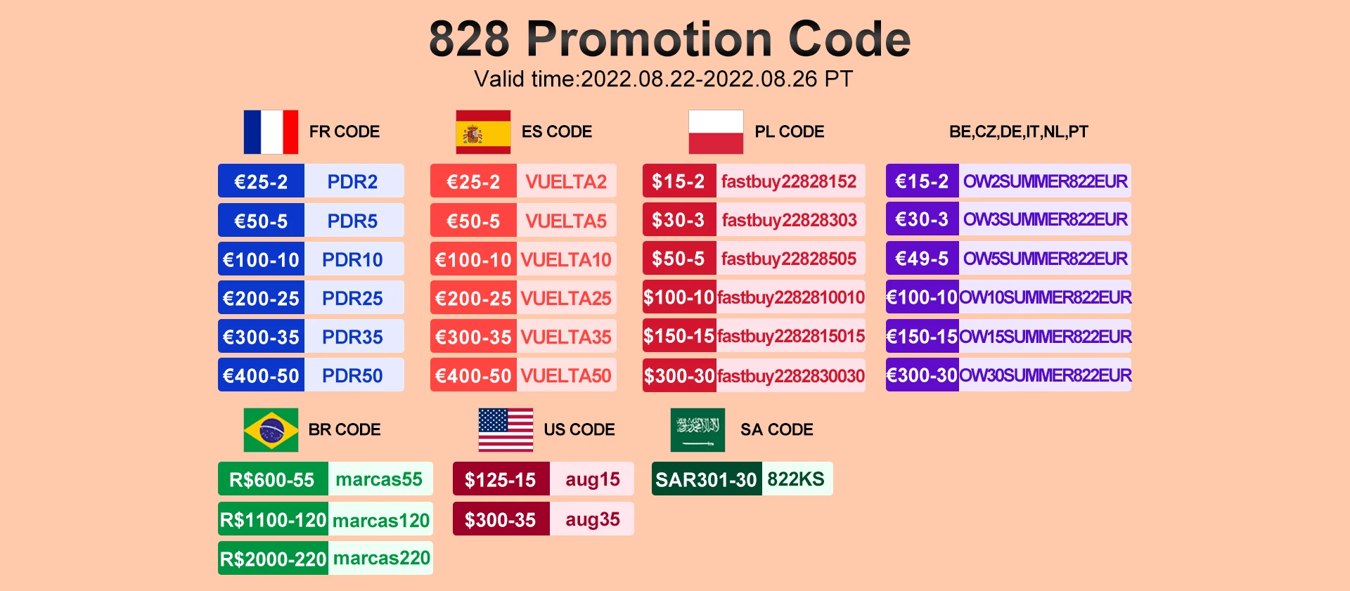 Большие Купоны на скидку!Как использовать: вам нужно только ввести код купона соответствующей страны в интерфейсе оплаты, чтобы использовать этот большой купон на скидку.!Если вы что-то не понимаете, пожалуйста, свяжитесь со службой поддержки клиентов.