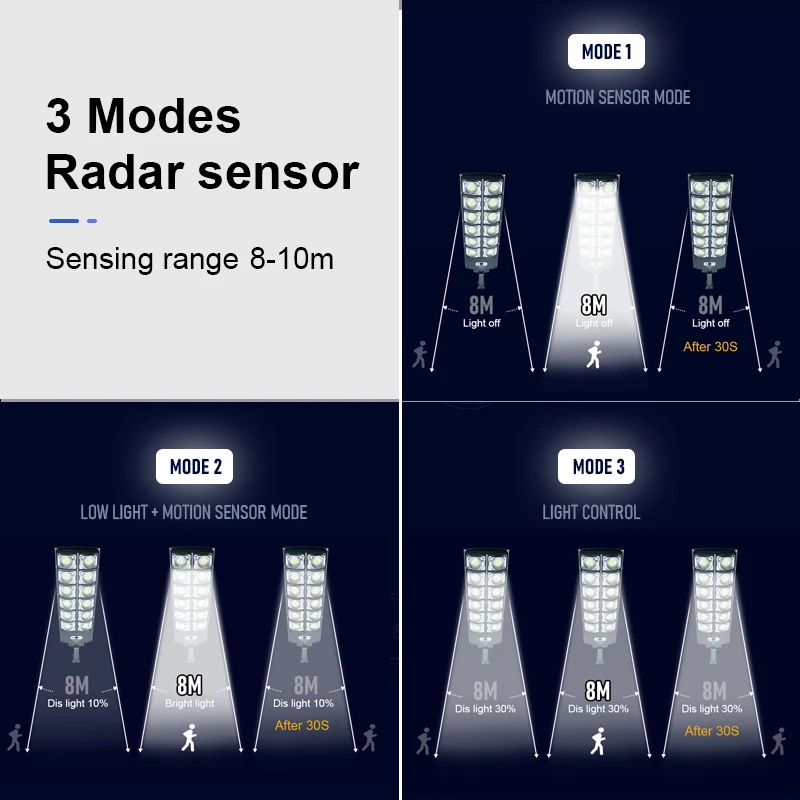 1. Пожалуйста, убедитесь, что солнечный светильник установлен в пределах 10 метров, и убедитесь, что солнечная панель находится в месте, которое может полностью противостоять солнцу.