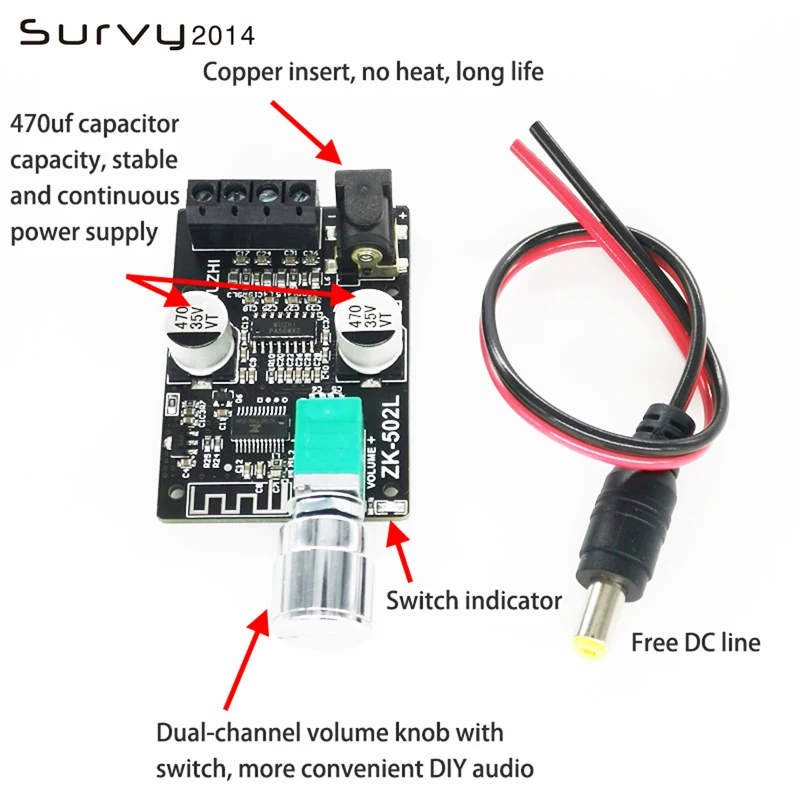 | Мини версия 20W30W40W50WX2 Bluetooth 5,0 цифровой усилитель мощности ручка для платы для регулировки громкости с переключателем DIY Мини-версия 50Wx2 Bluetooth цифровой усилитель мощности (регулятор громкости с переключателем) Примечание! Внешний корпус-это материальная посылка, которую необходимо приобрести отдельно. Он должен быть собран сам по себе, и посылка материала дана отверткой. Потенциометр регулирует громкость с помощью переключателя для легкого управления громкостью, что делает его идеальным для динамиков DIY. Если это металлическая коробка, вам нужно вытащить антенну Bluetooth. Медный соединитель постоянного тока используется для выдерживания высокого тока и без тепла. Конденсатор 470uf35V твердые конденсаторы обеспечивают хранение энергии и рассеивание тепла, а стабильный источник питания является необходимым условием хорошего качества звука. Бесплатная головка постоянного тока, совместима с входным интерфейсом питания этого продукта, даже если у вас нет адаптера или аккумулятора постоянного тока, его можно легко подключить. Версия Bluetooth 5,0, эффективность передачи выше, расстояние передачи больше. Меры предосторожности для использования: выключатель питания на плате-это переключатель ожидания. После выключения выключателя устройство находится в режиме ожидания низкой мощности. Для полного выключения питания или отключения штепсельной вилки постоянного тока на машине в течение длительного времени. Вопрос и ответ: 1. Как выбрать источник питания? Критическое значение имеет источник питания с платой. Чем выше напряжение, тем выше ток и тем лучше выходная мощность. Если у вас есть только 12V 1A, можно взять с собой в 3-4 дюймовый динамик. Если вы 19 в 5А или выше, нет проблем с 8-10 дюймов, и источник питания должен быть высоко оценен. Если напряжение слишком низкое, звук будет искажен после усиления звука. Если ток слишком мал, динамик будет тянуть низкое напряжение, работать нормально или качество звука будет ухудшаться. Рекомендуется использовать источник питания 18V19V2 4V с током выше 3A. Если у вас есть только блок питания 9V12V или 1A 2A, он также может быть использован, но мощность мала. Пожалуйста, обратите внимание на максимальную громкость при использовании, что может повлиять на качество звука. 2. Как выбрать динамик? Обычно используются динамики, как правило, 8 Ом, не могут отличать положительные и отрицательные, эффект такой же, могут также использоваться динамики 4 Ом. Если мощность динамика небольшая, она может использоваться в диапазоне 10-30 Вт. Напряжение источника питания невелико, чтобы предотвратить выгорание усилителя после горения. Например, выберите источник питания ниже 15 В. Если вы являетесь динамиком 50 Вт-200 Вт, не беспокойтесь о выгорании динамика. Вы можете выбрать источник питания 12-24 В. Чем выше выбранное напряжение, тем громче выходной звук или мощность. 3. Как подключить к Bluetooth? Включите усилитель мощности, подключите динамик, включите синий светильник, включите настройки телефона-Bluetooth-Найдите «BT-WUZHI», а затем нажмите на соединение, при успешном подключении появится звуковой сигнал, когда он находится в режиме Bluetooth, Вы можете воспроизводить музыку. В следующий раз, когда вы включите питание, он автоматически подключится к телефону. 4. Когда звук становится громче, появляется явление уродливого звука. Звук искажен. Пожалу