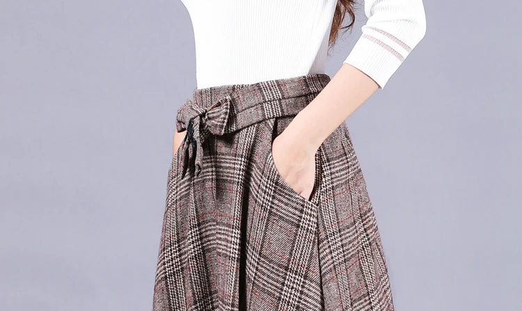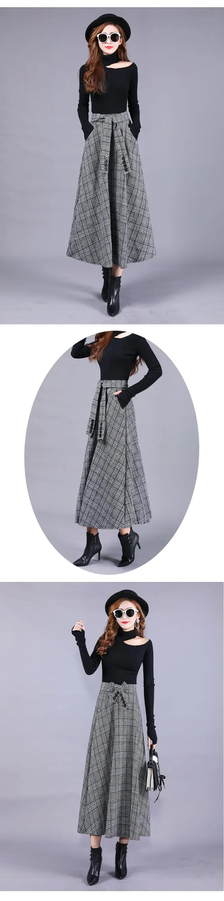 Винтажная клетчатая юбка, Женская Осенняя шерстяная юбка с высокой талией в английском стиле, длина миди, элегантное платье размера плюс, Женская юбка трапециевидной формы DF925 <