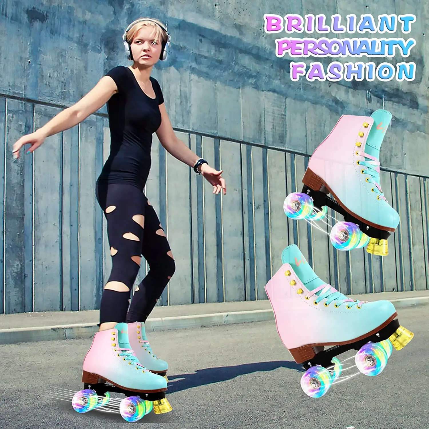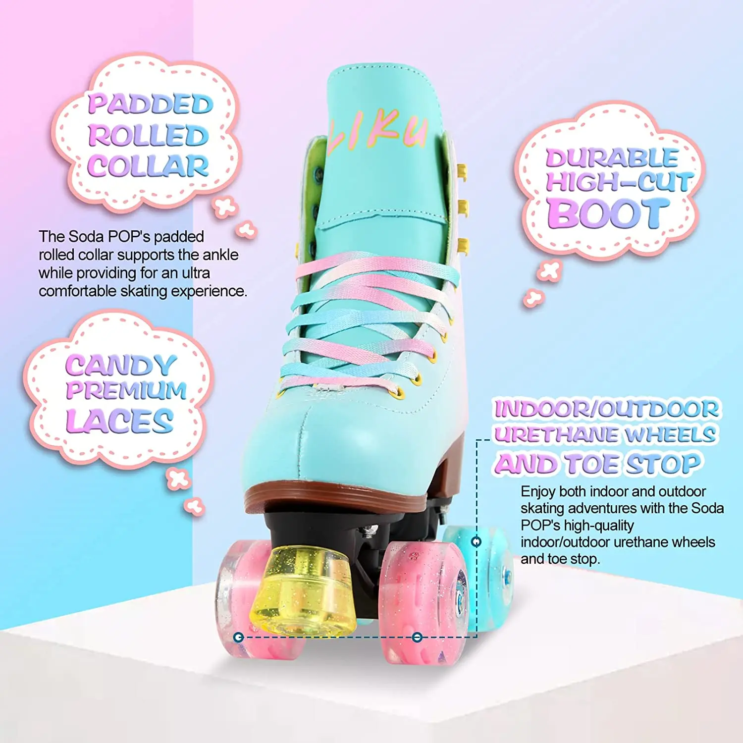 COMFPERFORMANCE ---- скейт LIKU имеет грузовики из алюминиевого сплава и опорную плиту, 58 мм 82A нейлоновые сердечники уретановые колеса. Подшипники ABEC 7, тормозная Пробка PU, которые идеально подходят как для использования в помещении, так и для уличного катания. Портативный ---- Классические высокие кроссовки на шнуровке коньки, характеристики Мягкие ошейники для собак, на подкладке, ПВХ симпатичного дизайна сапоги upper boots для того, чтобы убедиться, что ваши ребенок наслаждается поддержки и милая обувь для скейтеров.