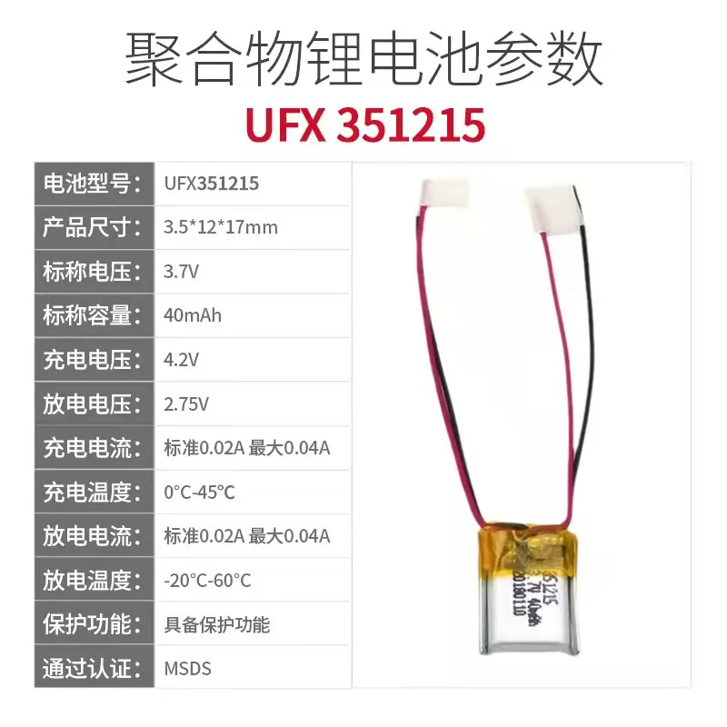 Заказной 351215 3.7v40mah электронный компас медный полюс ухо антимагнитного полимера литиевая батарея с защитной игрушечная тарелка светодиодный солнечной энергии бортовой Промышленный контроль оборудования разряда
