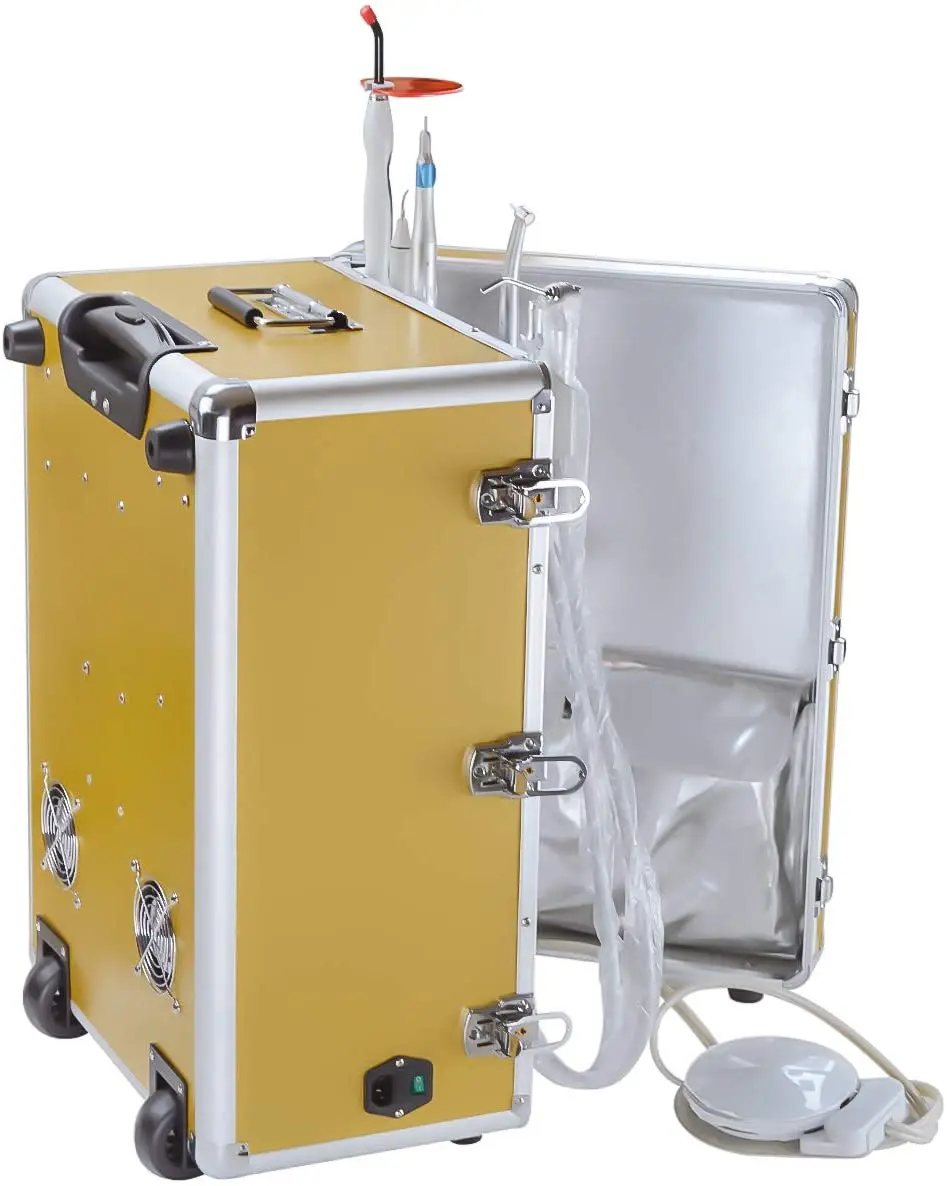 * Легко транспортируемый чемодан с выдвижной ручкой и колесами, стоматолог может перемещать устройство свободно и удобно;