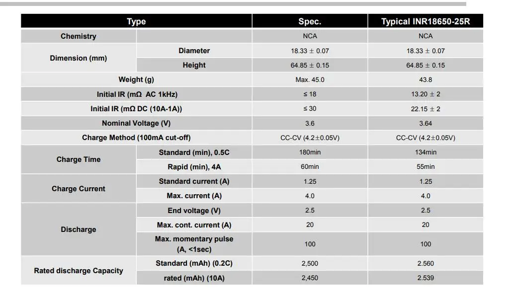 Model: INR18650 25R