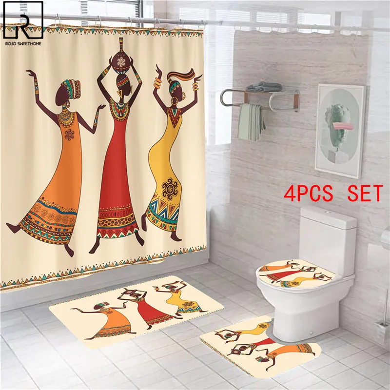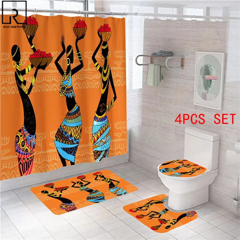 Название: Черная Женская винтажная занавеска для душа, полиэстер, ванная комната, перегородка, ванна, экран, Противоскользящий коврик для ванной, набор, крышка для унитаза, домашний декор