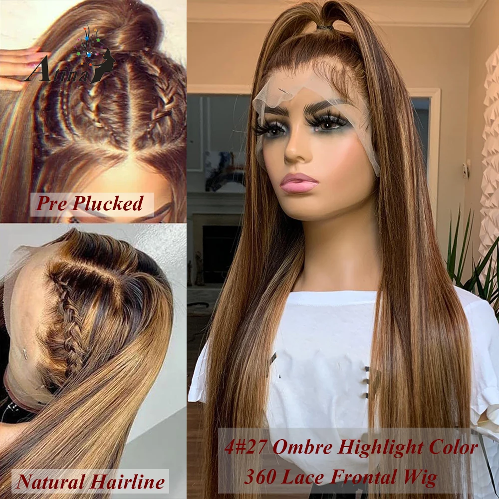 Медовый блонд цветной 360 кружевной фронтальный парик человеческие волосы Омбре Выделите прямые HD кружевные парики для черных женщин высокой плотности Atina