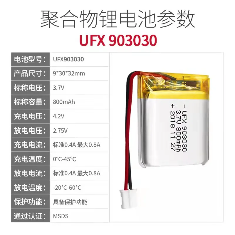 Полимерная литиевая батарея 903030 3,7 V 800 мА/ч, переговорные Bluetooth динамик маленький ночной Светильник Туалет светильник с защитная доска объявлений игрушка светодиодный