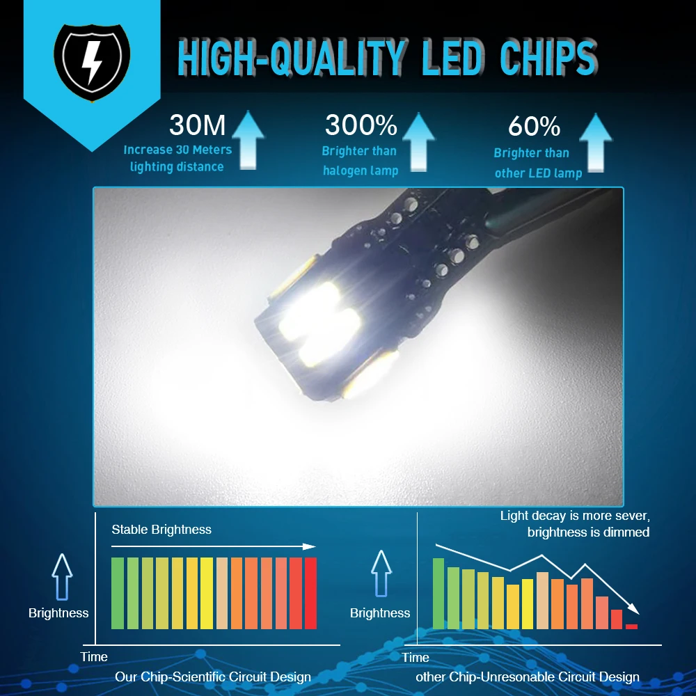 Canbus не содержит ошибок и идеально устанавливается как внутренний светильник (Примечание: несколько автомобилей могут иметь ошибки, если вы используете его для стоп-светильник.)