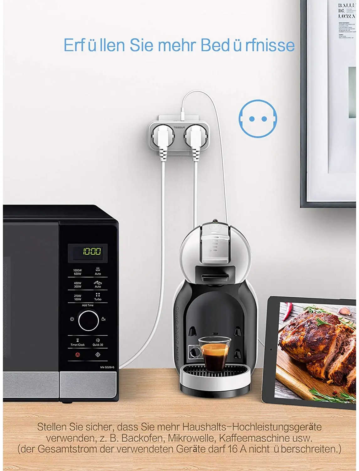 multiple wall sockets can be used in any indoor place, such as bedroom, bathroom, kitchen, office, etc., several appliances are allowed to work at the same time, the cables do not clutter.
