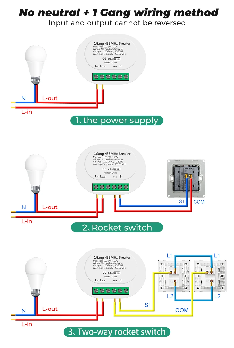 1. Одиночный провод: не требуется натуральный провод, подходит для большинства семей, не нужно подтягиваться к потолку для установки, более удобно