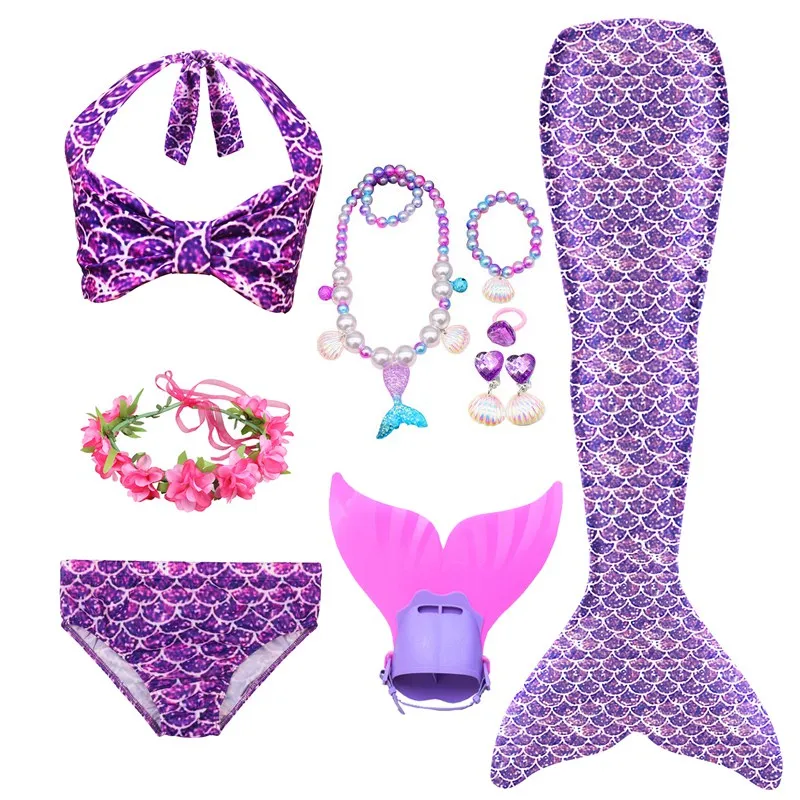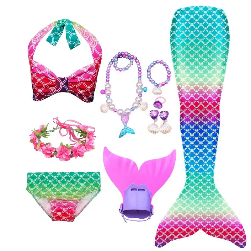 Посылка 1: 1 * хвост русалки + 1 * бюстгальтер + 1 * шорты + 1 * монофин + 1 * гирлянда + 1 * ювелирные изделия