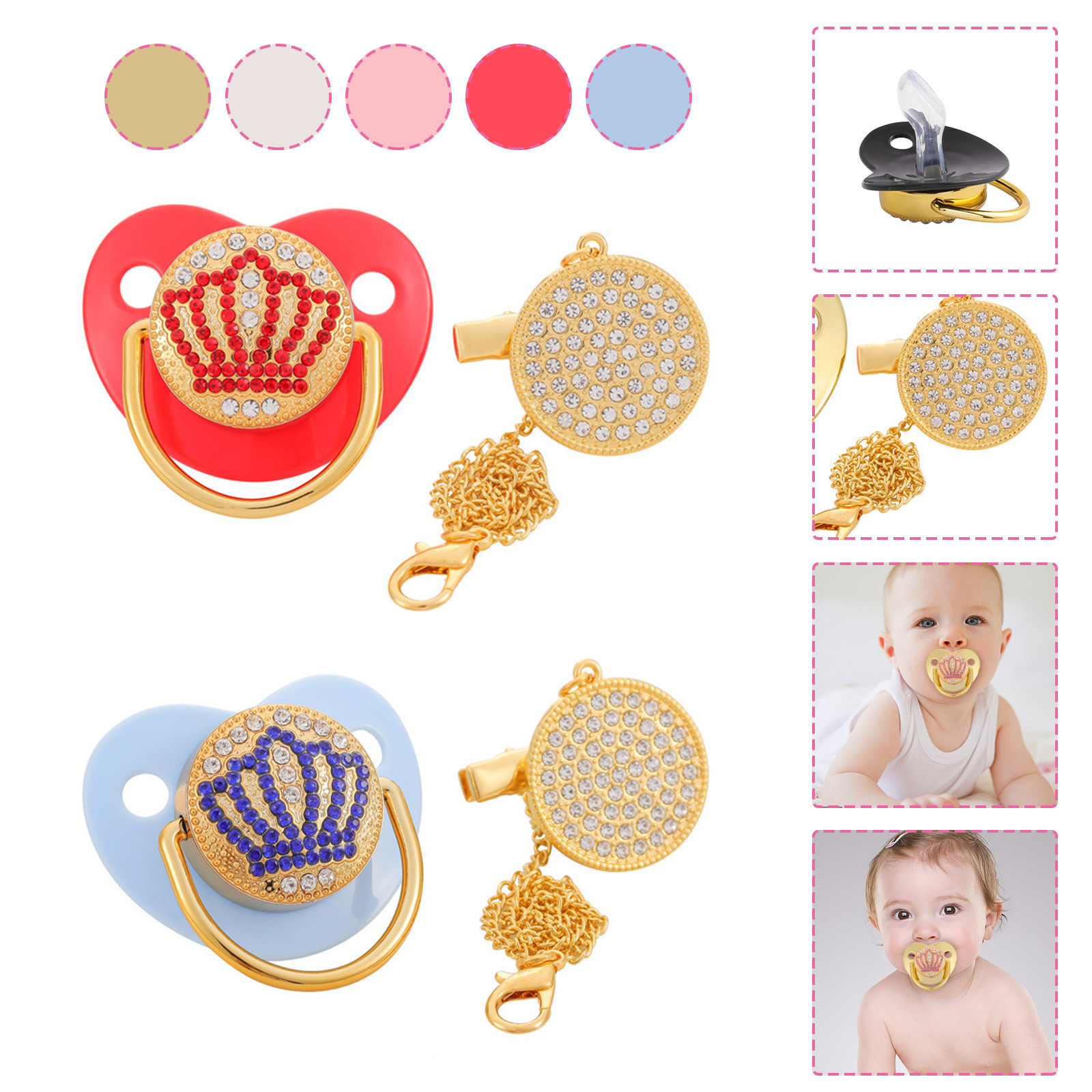 Детская пустышка на цепочке с прищепкой, первоначального зажим силиконовая детская соска Bling новорожденных соски-пустышки заклепками и зажимами размером с Стразы