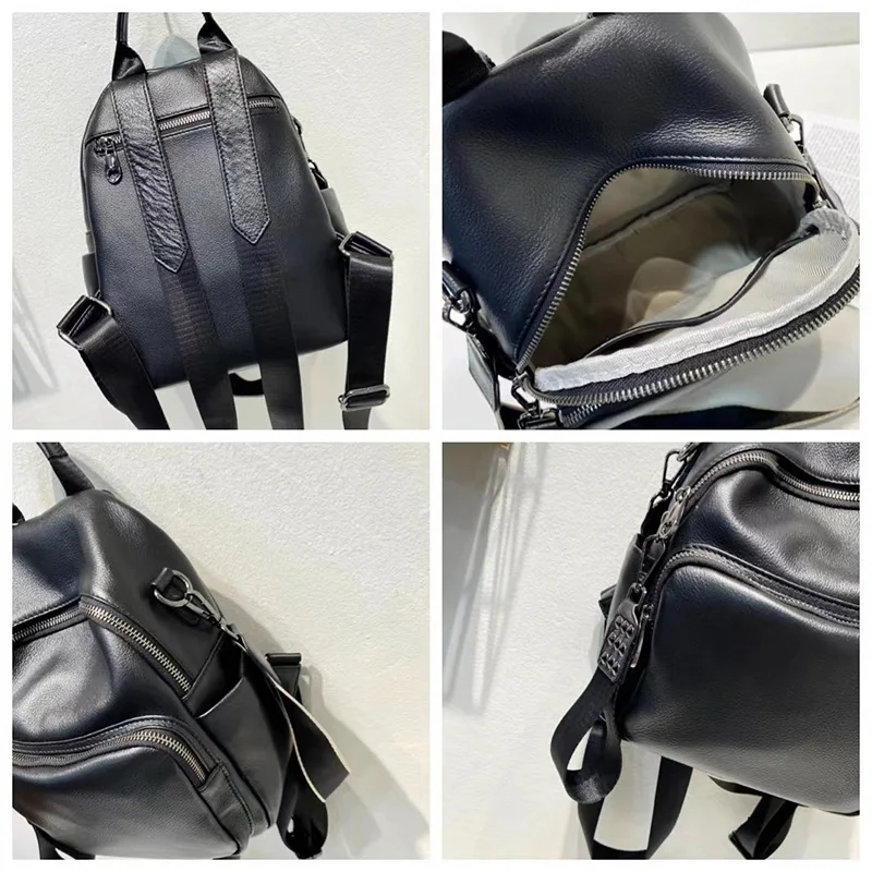 Материал:Мягкая коровья кожа (телячья кожа)(Плечевой ремень из коровьей кожи и хлопка)Цвет оборудования:ЧерныйРазмеры: 22x27x11 см (8,6x10,6x4,3 дюймов)Возможны отклонения на 1-3 см из-за измерений вручную.Есть дополнительный короткий ремешок, вы можете использовать рюкзак как сумку на плечо