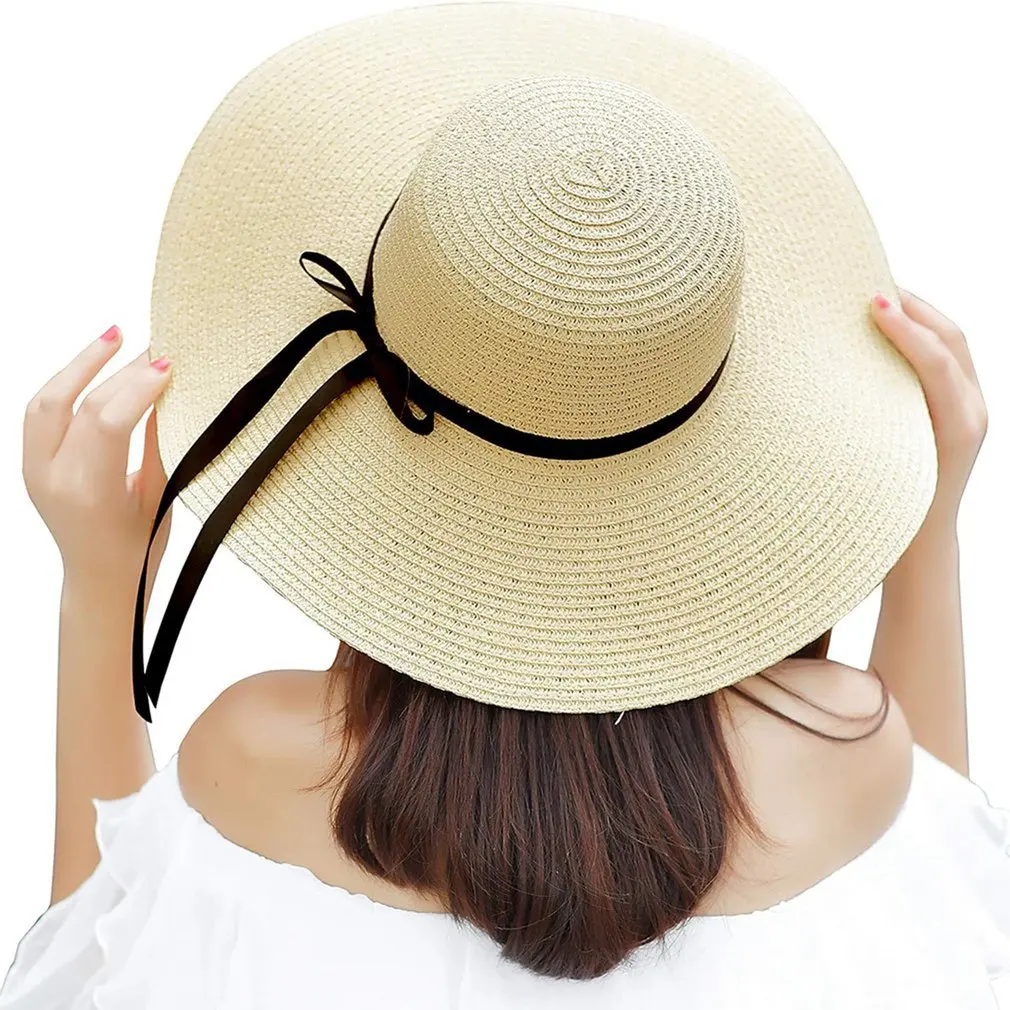 Женская пляжная шляпа изготовлена из высококачественного и приятного для кожи соломенного материала, с сильной защитой от ультрафиолета, идеально подходит для любого наряда, такого как платье, купальник, бикини или шорты.