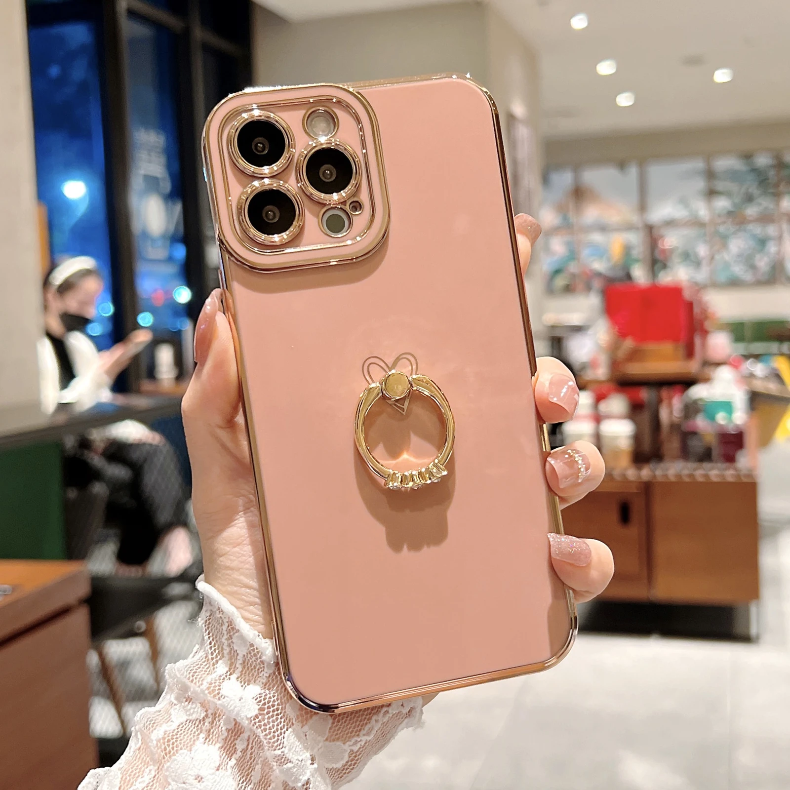 Роскошный чехол для iPhone 13, 12, 11, 14, Pro Max XS Max, XR, X, 7, 8 Plus, защита объектива, мягкий чехол из ТПУ с кольцом-держателем