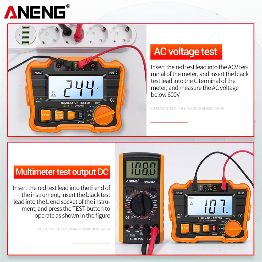 Это многофункциональный инструмент, который может измерять сопротивление изоляции и напряжение переменного тока. Он имеет модный внешний вид и стабильную производительность, используется для измерения электрического оборудования, кабеля, электромеханического оборудования, телекоммуникационного оборудования, электроэнергетических объектов и другого сопротивления изоляции.