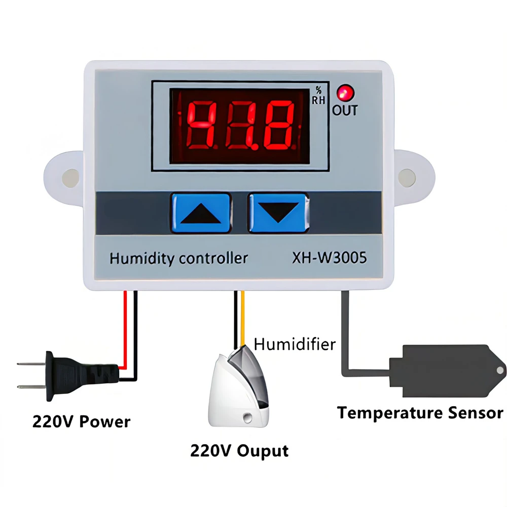 Установите старт влажности: нажмите кнопку вверх, чтобы начать влажность, нажмите около 3 с, чтобы начать мигание влажности, затем нажмите вверх или вниз, отрегулируйте набор