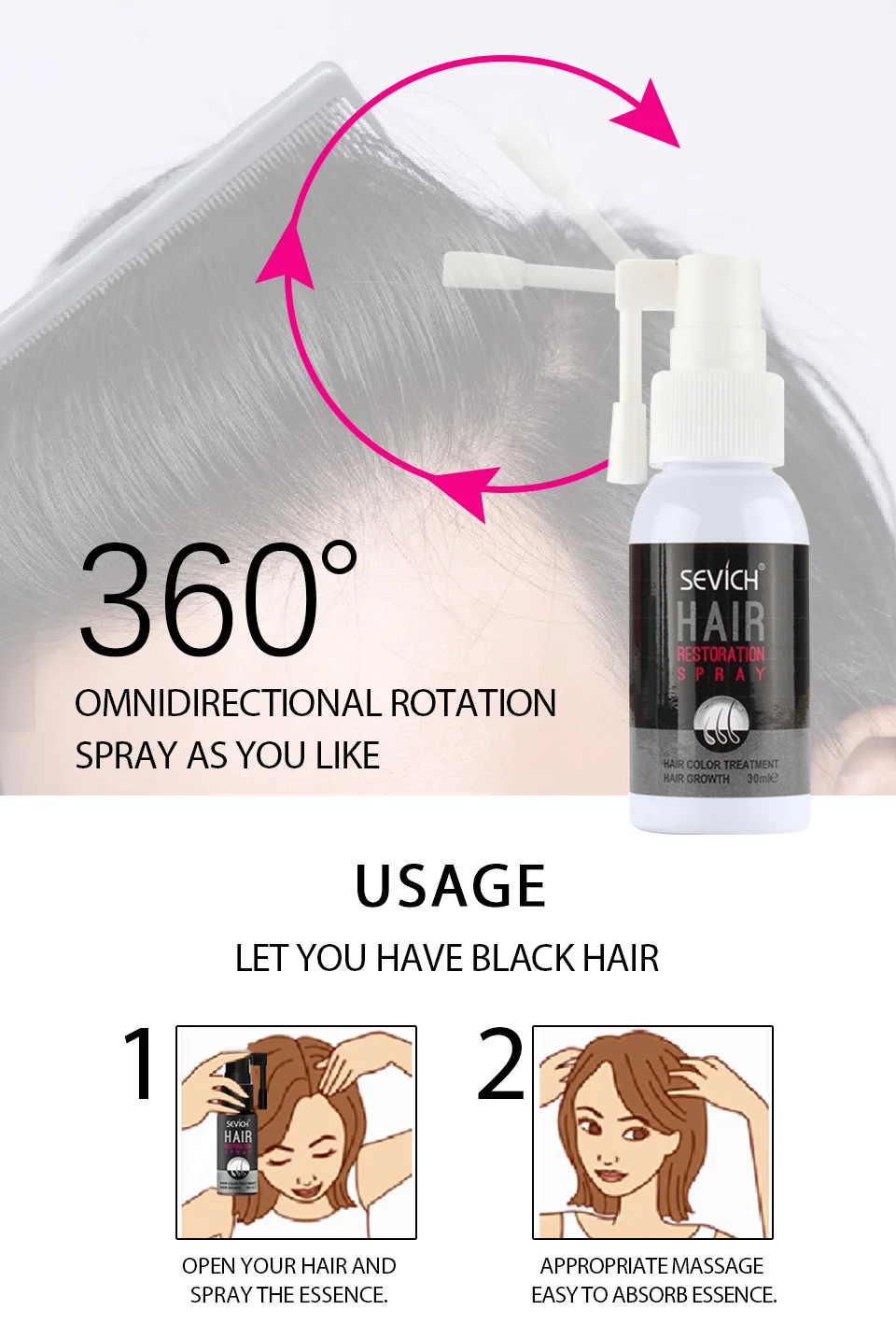 Серое лечение волос спрей сыворотка стимулирует восстановление роста волос черные волосы против выпадения волос Белый ремонт волос продукт для выпадения волос