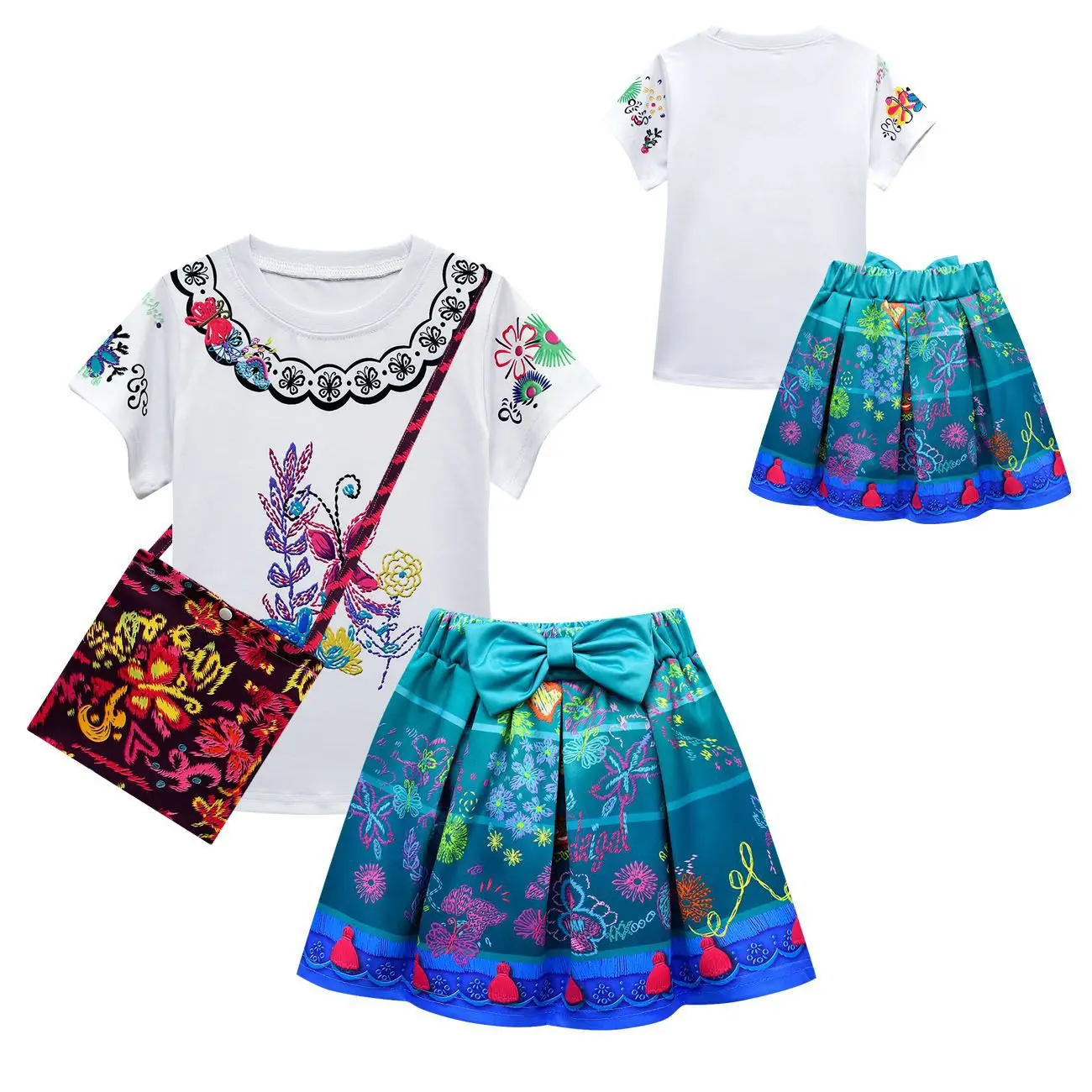 Disney Encanto Princess Mirabel Madrigal Cosplay Costume Short Slevees Skirt Set Fancy Children Party Role Play Clothing 3-11Y