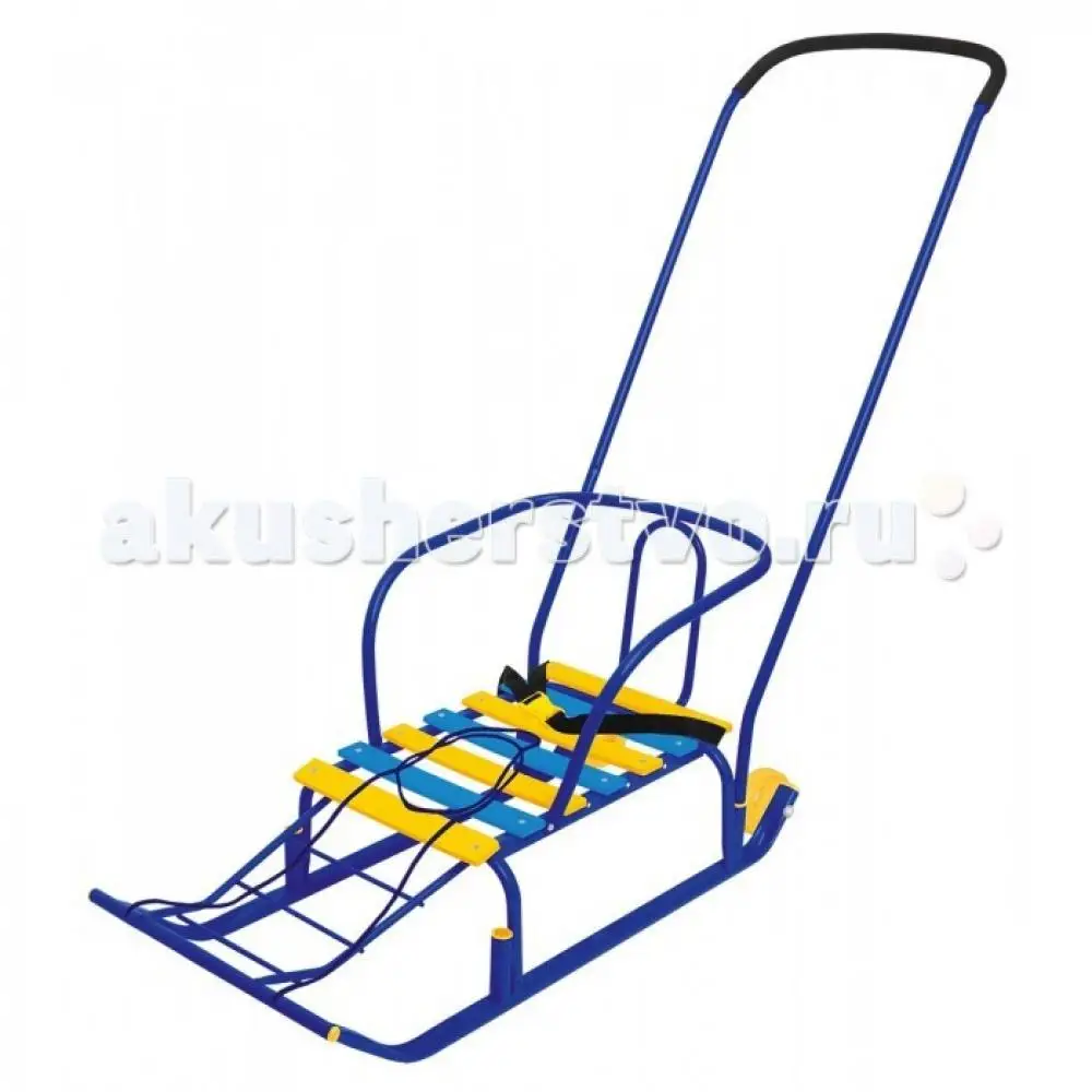 Санки на невысоких полозьях с достаточно широкой базой, что придает им дополнительную устойчивость и сводит к минимуму возможность переворачивания на поворотах.