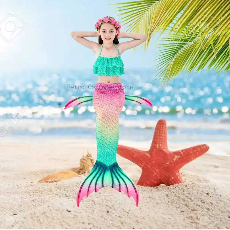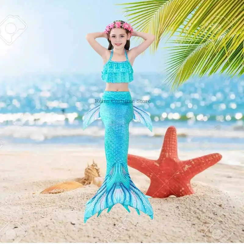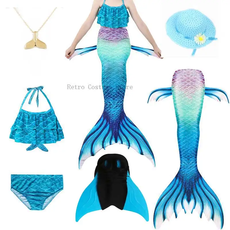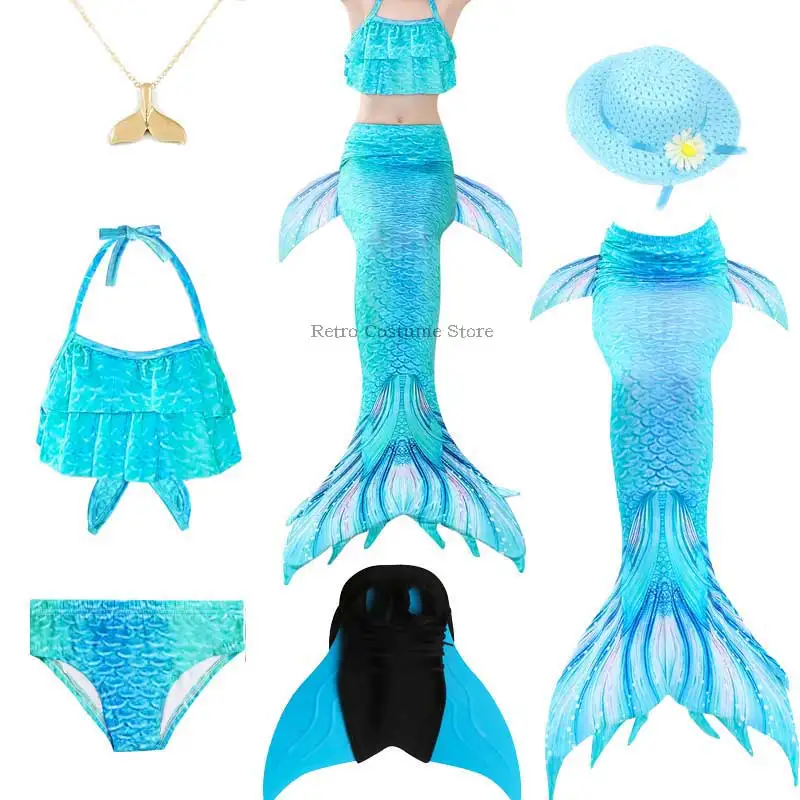 Комплект с плавником: топы, шорты, хвост русалки, ожерелье, кепка, ласты