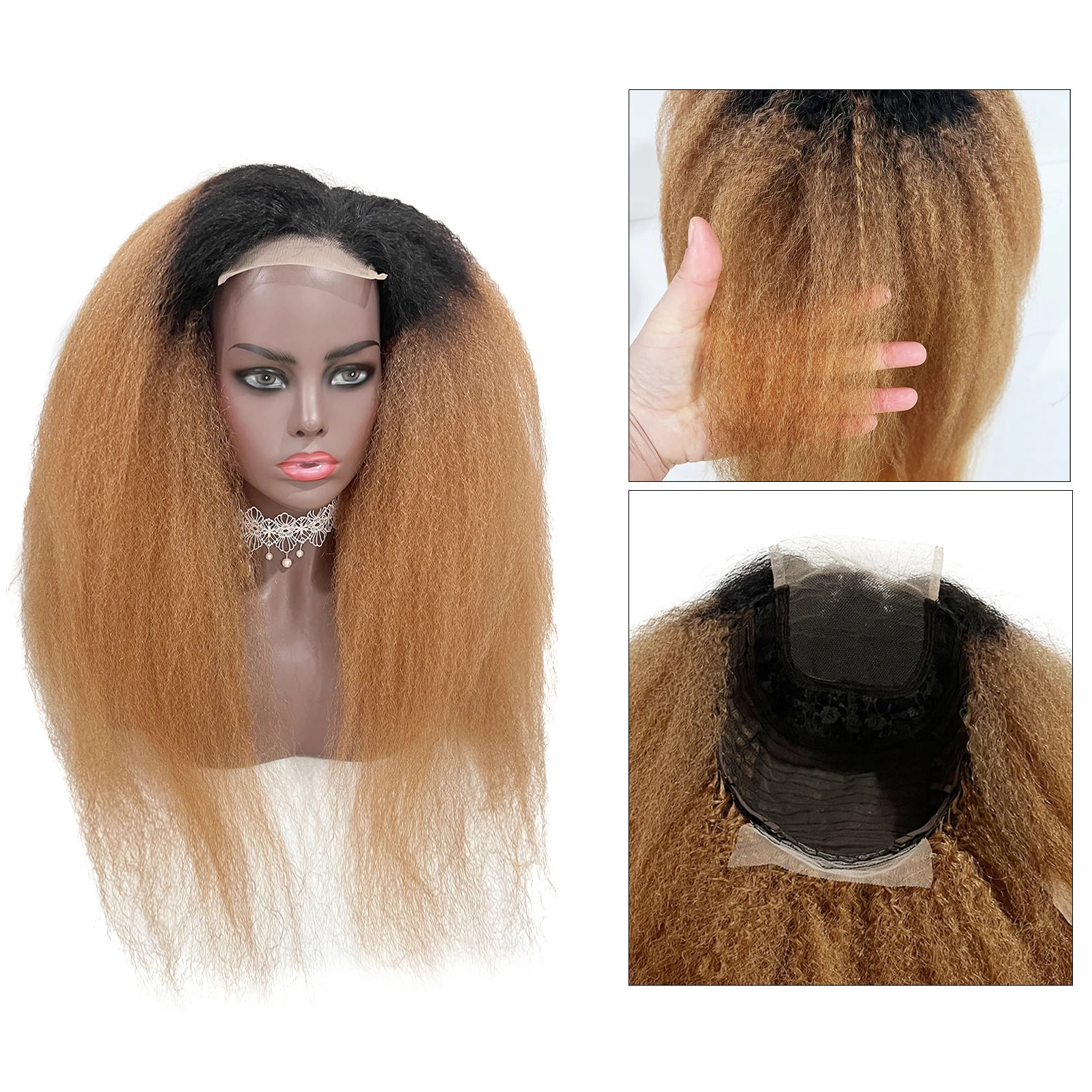 Кудрявый прямой парик 30 дюймов Омбре желтый коричневый с черным корнем парик бразильские виргинские человеческие волосы remy Предварительно выщипанные HD парик фронта шнурка